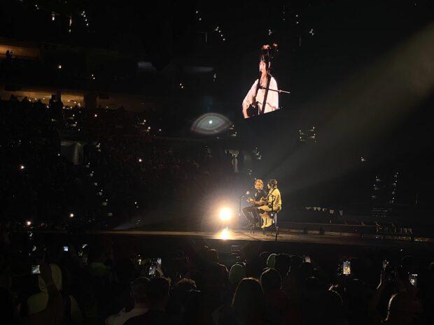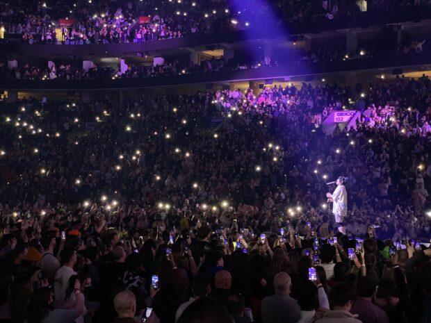 Contrast that with a couple points later in the set, where Eilish stopped down proceedings entirely to spend what felt like 10 minutes at a time tossing boxes of autographed Valentine’s Day candy hearts to the outstretched hands of individual fans all around the arena, making sure there wasn’t section of the venue (within an arm’s throw, anyway) that missed out.