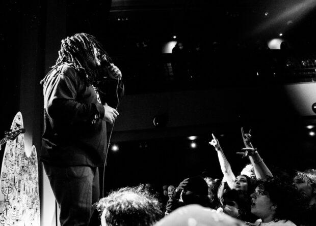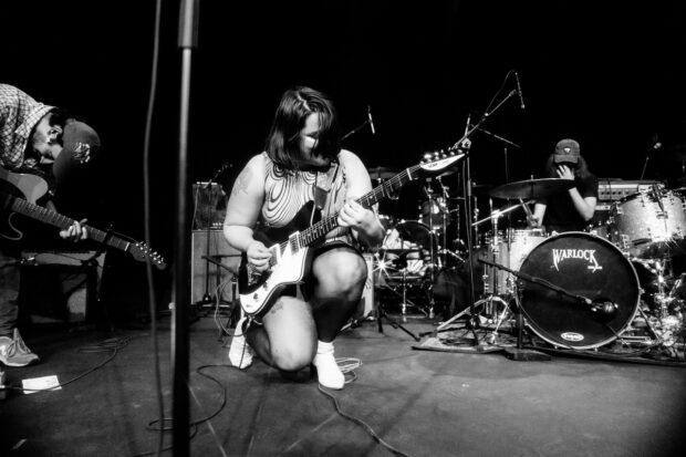 Mannequin Pussy played next. They had the audience moshing full throttle with songs from their self-titled debut album all the way through their latest EP Perfect. Frontperson Marissa Dabice alternated between playing guitar and singing, and putting the guitar aside to focus on vocals. Meanwhile, bassist Bear Regisford took the mic to close the set with “Pigs Is Pigs.”