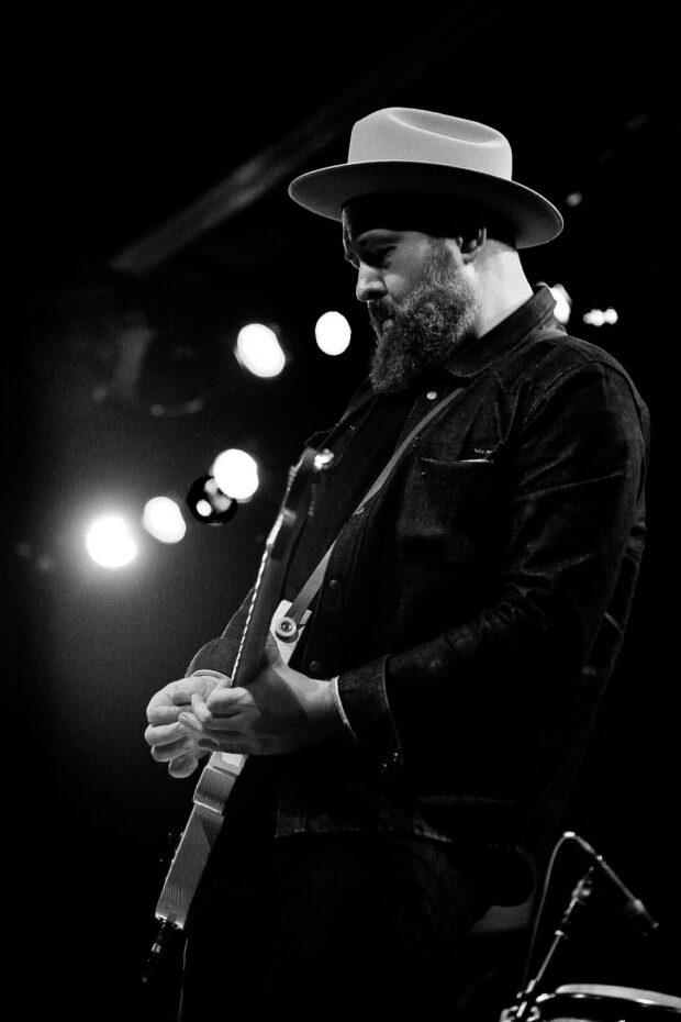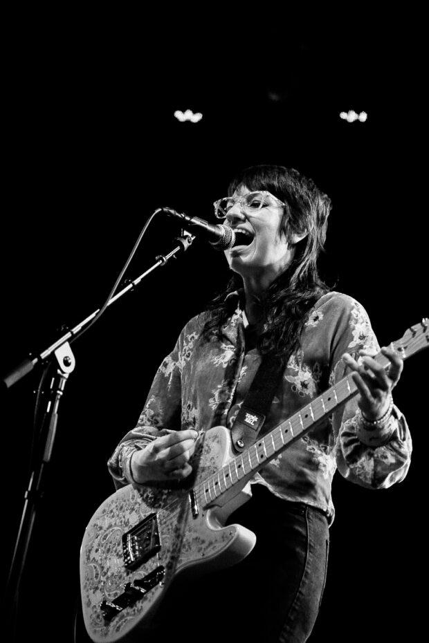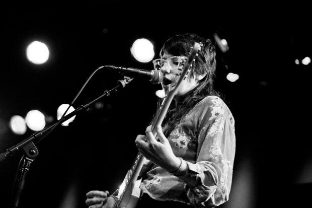 Delaware rock mainstay and now Philly regular Grace Vonderkuhn came on stage second. The garage rock threesome produces more sound than you might expect, and although they may have looked small on the wide stage that comfortably fits 10 musicians or more, they didn’t sound small. Frontperson Grace Koon seamlessly plays both rhythm and lead guitar parts, takes solos, and sings at the top of her lungs, and drummer Dave McGrory doubles on backing vocals as well. Multi-instrumentalist Brian Bartling, who plays bass with Vonderkuhn, even traded instruments with Koon for “Something to Say,” a bass-driven romp from 2018’s Reveries. Vonderkuhn’s setlist is always changing: they play a different mix of old and new songs (from a full album yet-to-be-recorded) every time they play live.