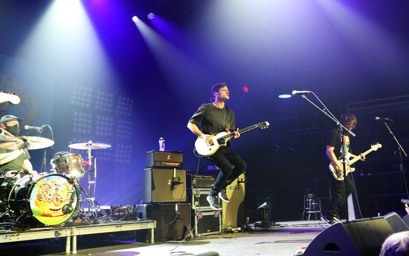 “The lost and found is open,” Sladkowski joked with the crowd as stray garments lost in the fray began making their way onstage, beginning with somebody’s dripping wet shirt — and at that point in the night it was unclear whether it was wet from rain, sweat, or both. “Thank you for showing up with Friday night energy, fuck yeah.” With springboard level jumps and rushes to the barricade to hold their instruments out to the crowd, the band clearly did the same.