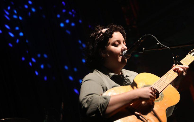 Up on the balcony, my friend and I were grateful for the moments of intense quiet that came over the crowd, as all the night’s musicians dug deep into their own kind of calm and focus. The Afterglows brought rich duets from their 2016 debut plus this year’s The Sound of the Afterglows. Bandmates Michael Cantor (of The Goodbye Party) and Sam Cook-Parrott (of Radiator Hospital) took time to thank Sadurn’s G DeGroot for their years of support on the Philly scene, including a night they rolled up to a near-empty Afterglows show with twelve more friends in tow. Shannen Moser, too, gave gratitude for years of fellowship with everybody on the bill, back to shows in 2016 and 2017 that felt “like a lifetime ago.” Solo, their voice rang out like a bell, timeless and disarming, on old songs and some that come soon – even one about petting horses at soccer practice.
