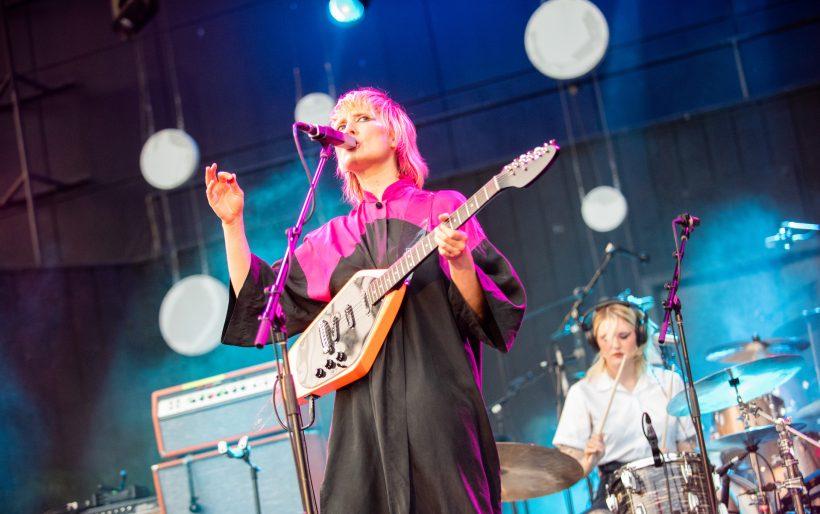 For many in attendance, the show’s community-minded nature was well-known. To some, it was simply a stellar lineup of leadling lights from the indie rock umbrella, beginning with left-of-center Welsh singer-songwriter Cate Le Bon. For an artist whose work in recorded form can lean quite ethereal, last night’s set had a vibrant pulse to it, something to lift the audience out of the late afternoon funk but not push them too hard, given the climate. Drawing on her two most recent albums, this year’s Pompeii and 2019’s Reward, Le Bon’s performance lolled, it bopped, and it gently grooved, recalling bits of kindred spirits Wye Oak and early Tame Impala, especially the set-closing numbers “Home To You” and “Remembering Me.”