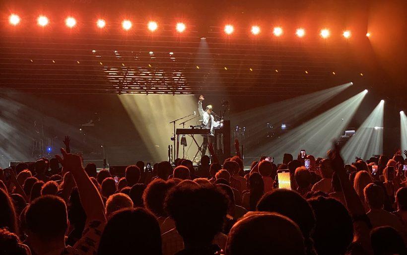 Philly-rooted, Cali-based crooner Pink Sweat$ warmed up the theater as the crowd filed in with a short and sweet set that was one half beat-oriented bops backed by dancers, and the other half acoustic contemplations. He positioned “Paradise” as a love song between audience members. “I’m singing for him, to her,” he said, picking out a couple up front. “So bro, don’t try to fight me after the show, it’s not like that. You can look into her eyes while I’m singing and see right into her soul.”