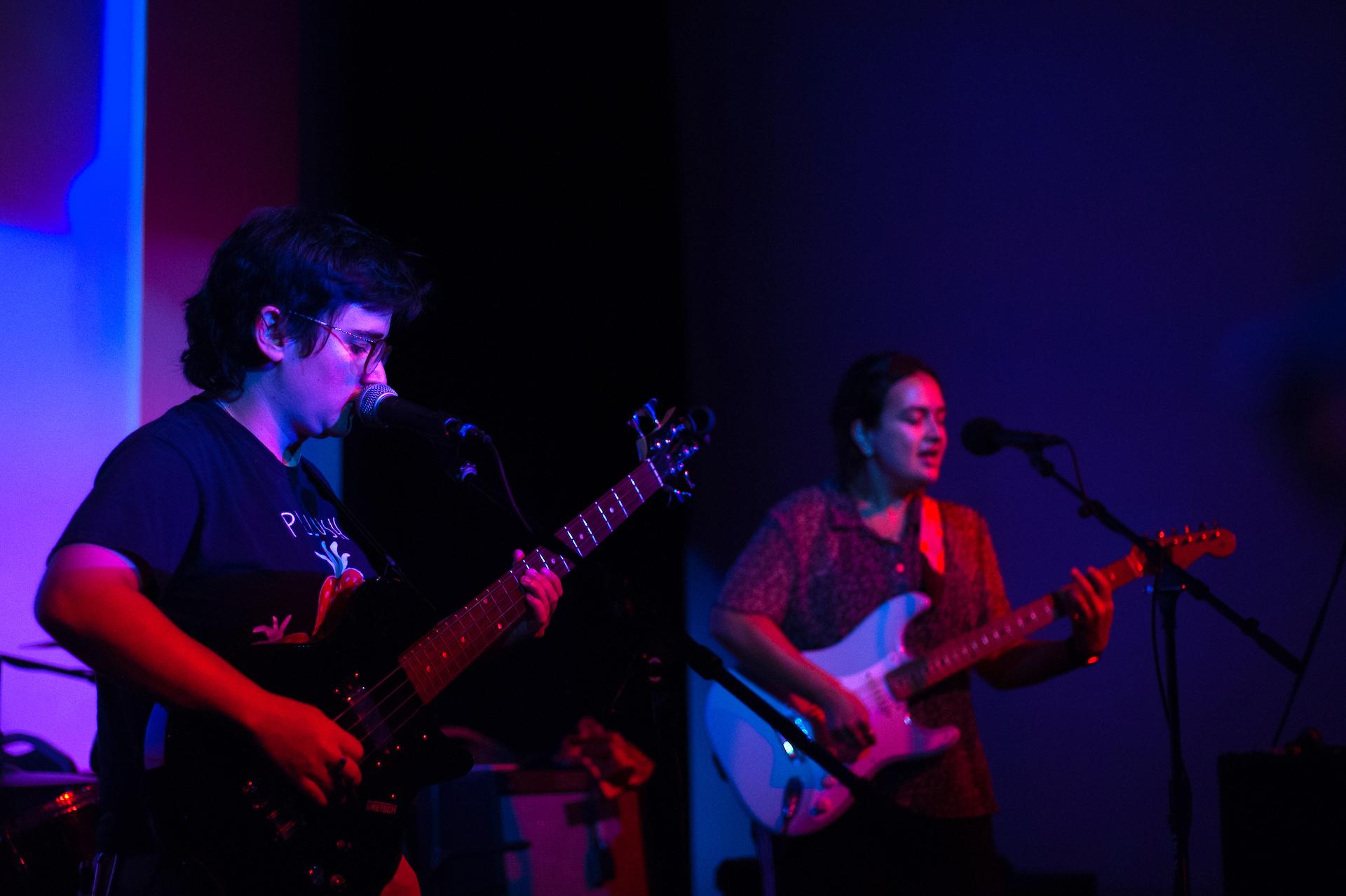 With the room slowly filling up more, it was time for the return of Remember Sports. Longtime bandmates Carmen Perry (guitar), Catherine Dwyer (bass), Jack Washburn (guitar), were joined by recent addition Connor Perry (drums), comprising the “new” Remember Sports. Their “new” record Like A Stone, released in early 2021, shows that they are not finished yet. Between the heat sweat being mopped up by a promotional Sixers towel and various glances and “I’m ready” remarks towards each other, PhilaMOCA got a wonderful show.