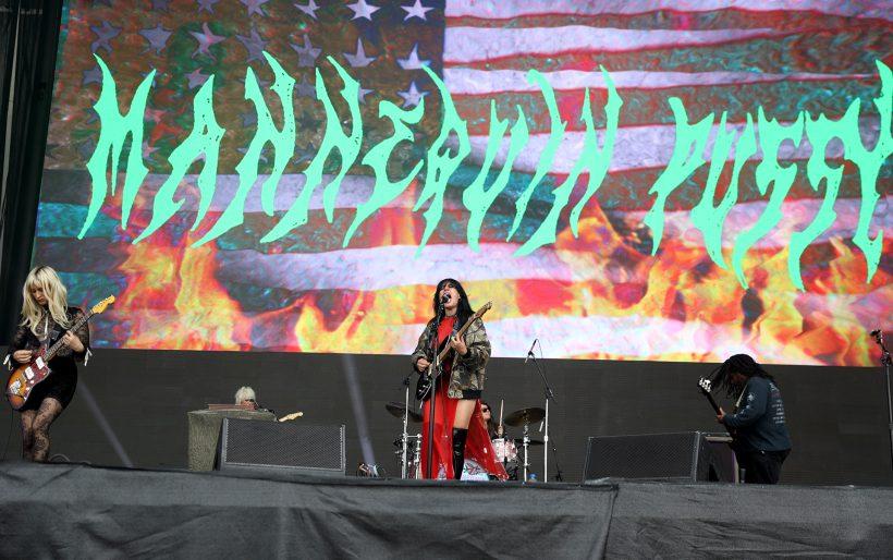 Our day started with this much-loved Philly punk four-piece delivering soaring anthems like “Control” and “Drunk II” and raging to the two-minute rippers “Perfect” and “F.U.C.A.W.” They also performed in front their festival backdrop of late: of a logo of band name’s superimposed on a burning American flag. Frontperson Missy Dabice explained was an act of solidarity against “a small minority of Christian fascists that have taken over the country” from a band that includes Black, woman, and trans members, folks whose rights are under attack. “We will never pledge allegiance to a country that does not take care of all of us,” Dabice told the crowd, before launching into the heavy burner “Pledge.”