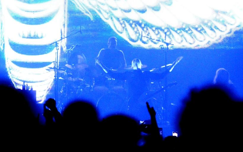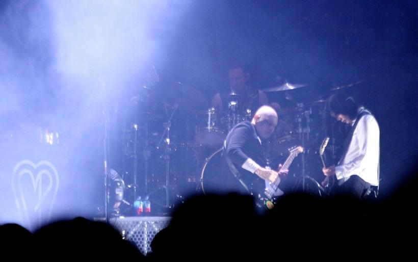 The extended time meant that Philadelphia marked the first time in the Pumpkins’ tour in which they played a slightly different setlist than previous shows and the change was noted right off the bat. “Empires,” a new song the band had been opening shows with all tour, was bumped to second on the setlist. Instead, the Pumpkins opened with “Quiet,” a track off the band’s magnum opus, Siamese Dream, released in 1993. In the process they were greeted by lead singer and guitarist Billy Corgan, whose bald head and black dress combo could only be described as a sort of grim reaper monk chic that I imagine must be fashionable among sects of satanists. I thought he pulled it off nicely.