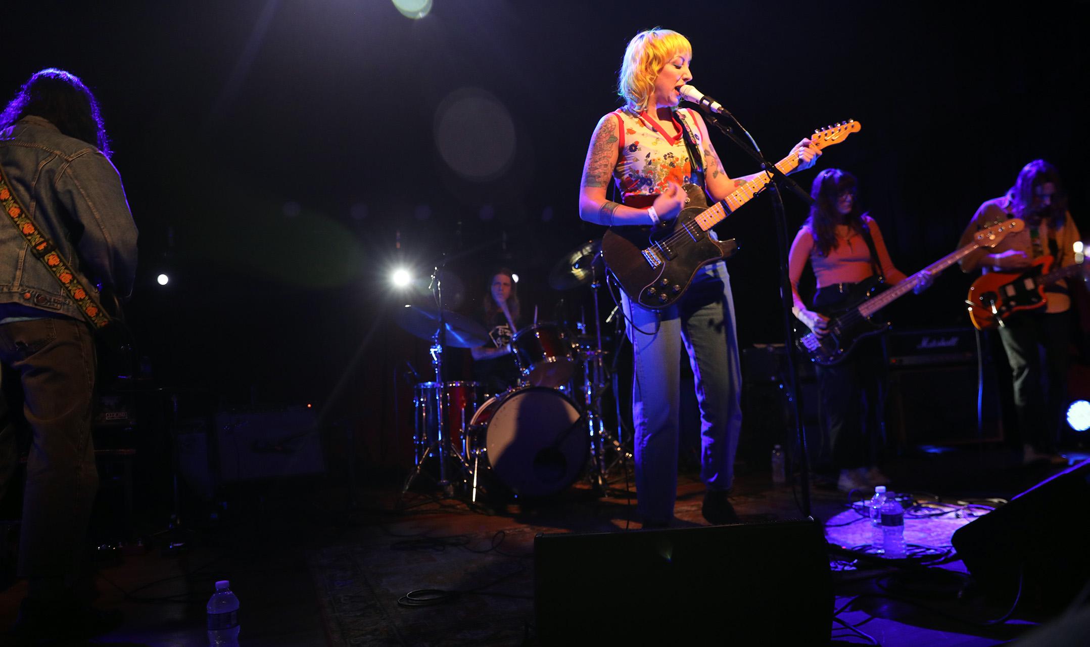 Know what else I’m here for? Don’t Know What You’re In Until You’re Out, the outstanding new album from Philadelphia’s Gladie, who opened the night with a rousing set in their current five-piece configuration: frontperson Augusta Koch and longtime collaborator Matt Schimelfenig on guitar, with bassist Liz Parsons, guitarist Pat Conaboy, and drummer Miles Ziskind.