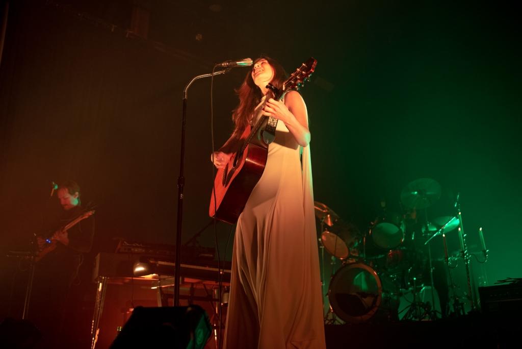 Hearts were aglow last night at Union Transfer for a brilliantly theatrical and gorgeous performance by Weyes Blood, the project of Natalie Mering, a Bucks County-rooted, choir-trained vocalist turned transcendent composer and poet. Her latest record, And In The Darkness, Hearts Aglow was on full display, with songs from the album making up most of the evening’s setlist and Weyes Blood’s costuming referencing the album artwork, lit dramatically in cool tones with a warm glowing heart beaming from her chest.