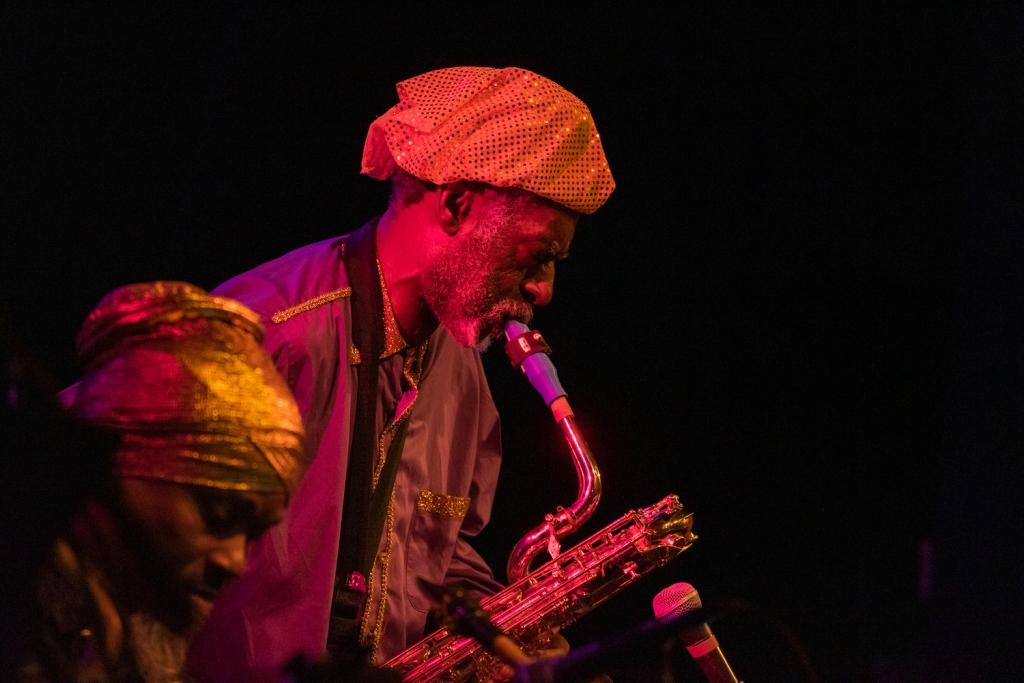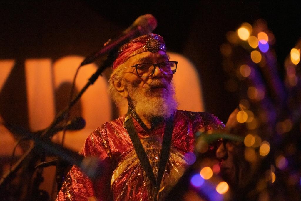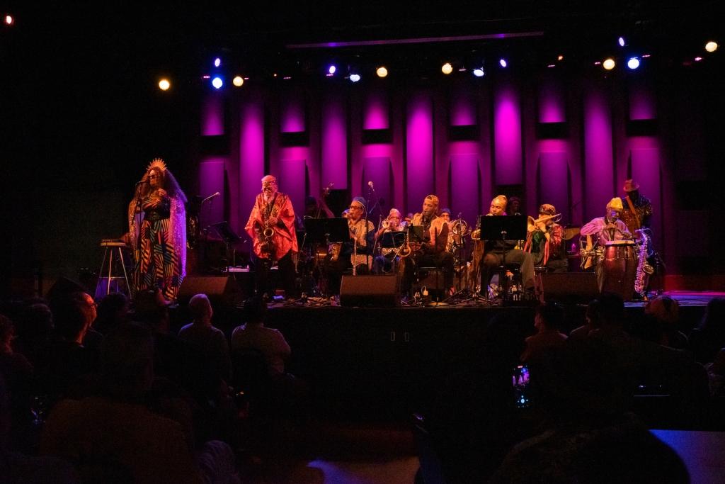 Riding high on the acclaimed Living Sky — number 14 in WXPN’s Best of 2022 MEGA LIST — last night’s performance found the Sun Ra Arkestra traveling the spaceways, and teeing up their next Philadelphia performance: a celebration for the 99th birthday of band leader Marshall Allen (as well as 109 years since Sun Ra’s arrival) on Saturday, May 27th. Find more on that show at WXPN’s Concerts and Events page and see pictures of last night’s performance below, care of WXPN contributing photographer Ellen Miller.