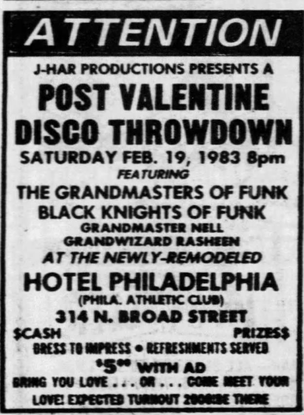“People tend to forget, hip-hop started with DJing and soundsystems. That’s why Boogie was number one,” Holiday says. “Boogie had the biggest sound system, and everybody after that tried to catch up with him. FMD and Sex Machine was about sound. B-Force had a nice sound, but everybody followed Boogie. Everything was about sound first, then when they heard the rapping, that’s when rapping got involved with the DL. So, we [MCs] had to carry crates of albums just to get on the mic. So, after I got good enough, I’ll never forget it — February 14th,1980 at the church right on Germantown and Chelten [possibly First Presbyterian Church] — that’s where I performed my first professional show at. Mastermind took me up. He said ‘Yo, you wanna make some money?’ We go do a show. And he introduced me to Boogie. We came on right after Wonder Boy Troy and Grand Tone [member of the Grandmasters of Funk and DJ Diamond Kuts’ Father].”