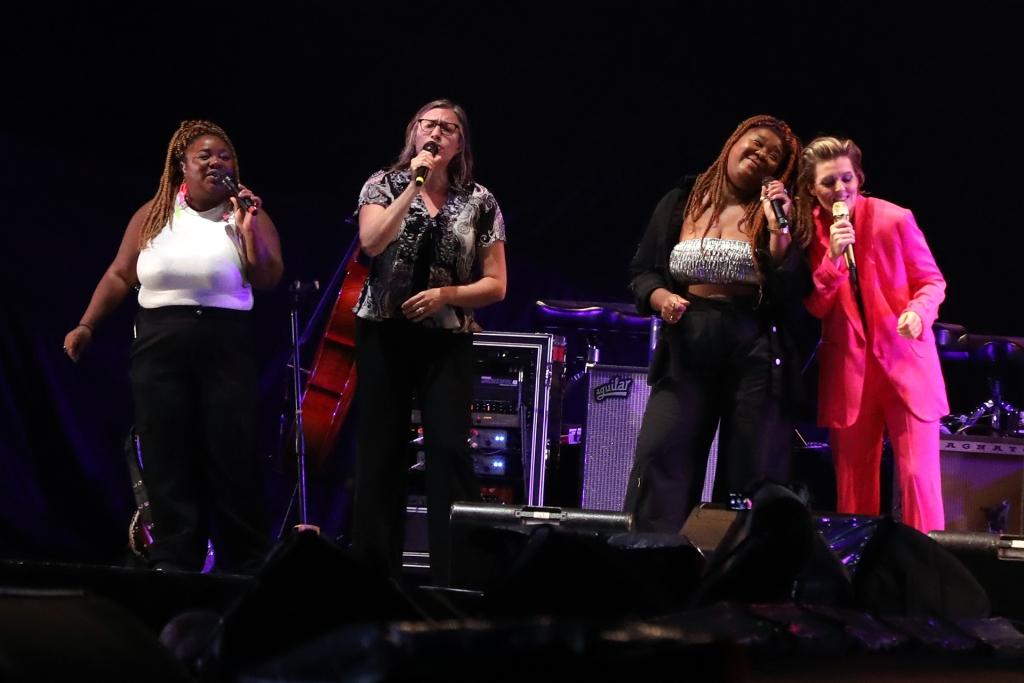 Backed by her two-decades-plus collaborators Phil and Tim Hanseroth and an expansive band, Carlile came out swinging with the rock rage of “Broken Horses” ripping into the bright and buoyant folk-pop of “You And Me On The Rock” from 2021’s In These Silent Days, accented with gorgeous backing vocals by Chauntee and Monique Ross (aka SistaStrings) and Kyleen King.
