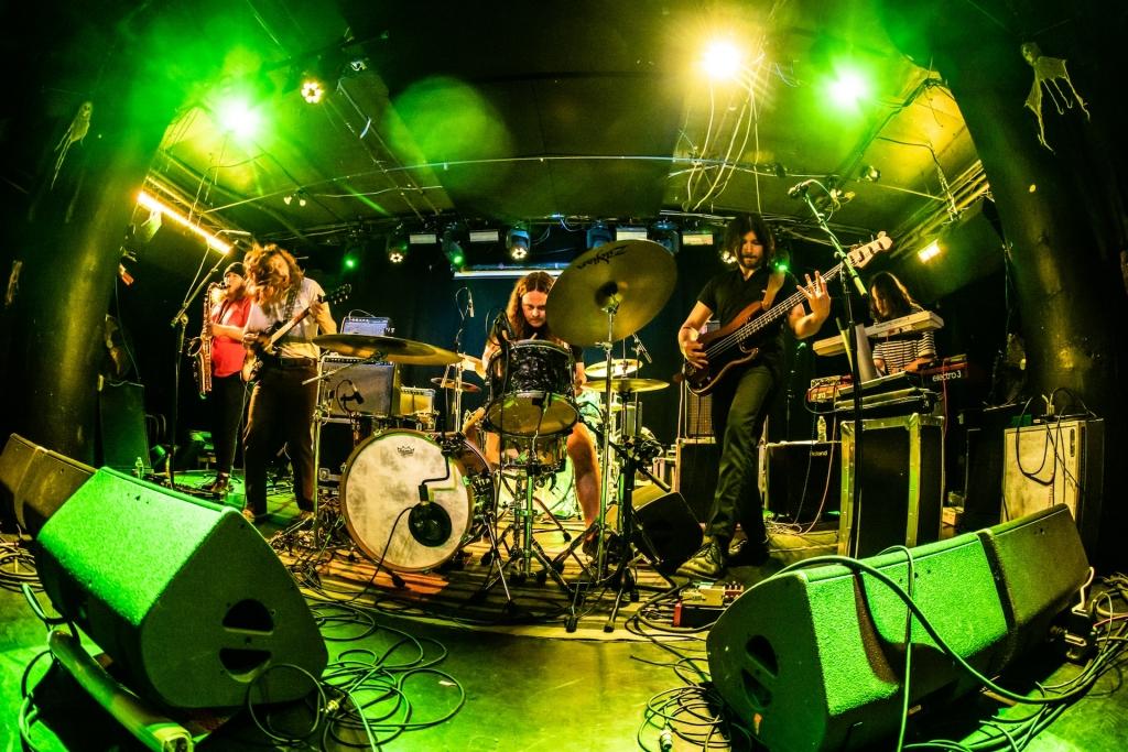 To warm up the Underground Arts stage Sunday night, Hooveriii (pronounced “Hoover Three,” if you were wondering) lined up five-thick with sax and synth on the flanks, and blasted the Underground Arts crowd with a luxuriant set of proggy psych-rock. They play their instruments with a level of skill approaching the prodigious, with frontman Bert Hoover looking a little like Duane Allman in an anachronistic Spacemen 3 tee, his long hair flailing with every headbang on dueling-octave guitar solos that would make Nels Cline nod in approval.