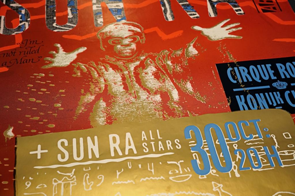 Poster promoting Sun Ra Arkestra with his All-Star Band at the Cirque Royal in Brussels | courtesy of University of Pennsylvania Libraries