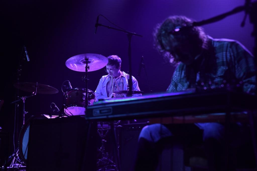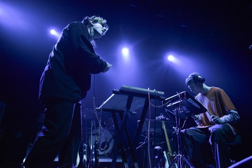 The Union Transfer crowd rapidly grew in size during ECHOTRACER’s set. Facing each other, guitarist/vocalist/sampler Douglas Dulgarian (of local heroes TAGABOW) and full body 2’s drummer Jack Chaffer dialed in with laser focus. Dulgarian often cued Chaffer at key moments that shifted to the next drop or sample. FUCKING22STEP, released this past November, is a four-track EP coming in under 15 minutes. The crowds experienced an expanded version of these tracks. The duo could lean into the really catchy bits like the rippling cyber synth section of “POISON LEAD” or really build up to the drop in “PEELBACK SWAY”.