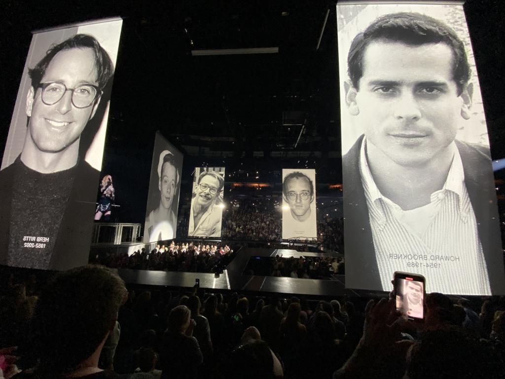It was heavy and emotional, too: on the gripping power ballad “Live To Tell” from True Blue, those aforementioned projection drapes were filled with cycling images of folks, mostly artists, who passed away from HIV/AIDS: dancer Alvin Ailey, rapper Eazy-E, painter Keith Harring, photographer Robert Mapplethorpe, actress Cookie Mueller. (If this seemed a touch exploitative, it’s worth remembering that many of these were the faces of people Madonna knew, and that she used her celebrity for advocacy and allyship going back to the late 80s.)