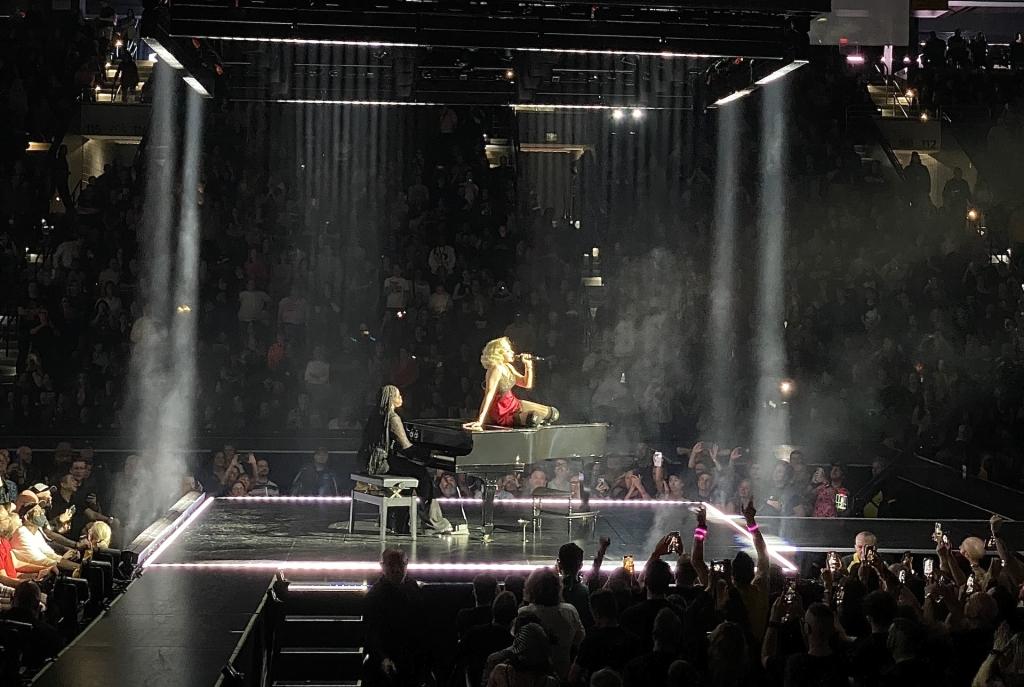 The music mostly moved chronologically forward as the night went on, with a central riser at the end of the arena re-creating various environments, from Manhattan nightclubs Danceteria and CBGBs to lavish modernist dance warehouses and Fashion Week style runways to, well, church. But to look at this production as her Eras Tour is a mischaracterization; it is focused as much as it’s freewheeling, intimate as much as it’s opulent, with blockbuster hits sitting alongside less-expected deep cuts, broken up several times along the way with stunning theatrical set-pieces.
