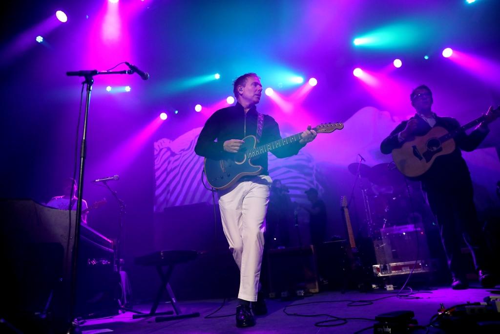 Opening the show were the Toronto dream pop outfit The Weather Station, who played a lovely set of cuts from their 2021 record Ignorance as well as as-yet-unreleased material from their album in the works. Frontperson Tamara Lindeman’s haunting voice was bolstered by her bandmates’ dynamic playing, particularly the saxophone shredding by Karen Ng and the understated percussion by PA native Dominic Billet (sporting a Sound Of Philadelphia t-shirt). Friday was their first in a run of dates with Belle and Sebastian that continues tonight at Boston’s Orpheum Theater.