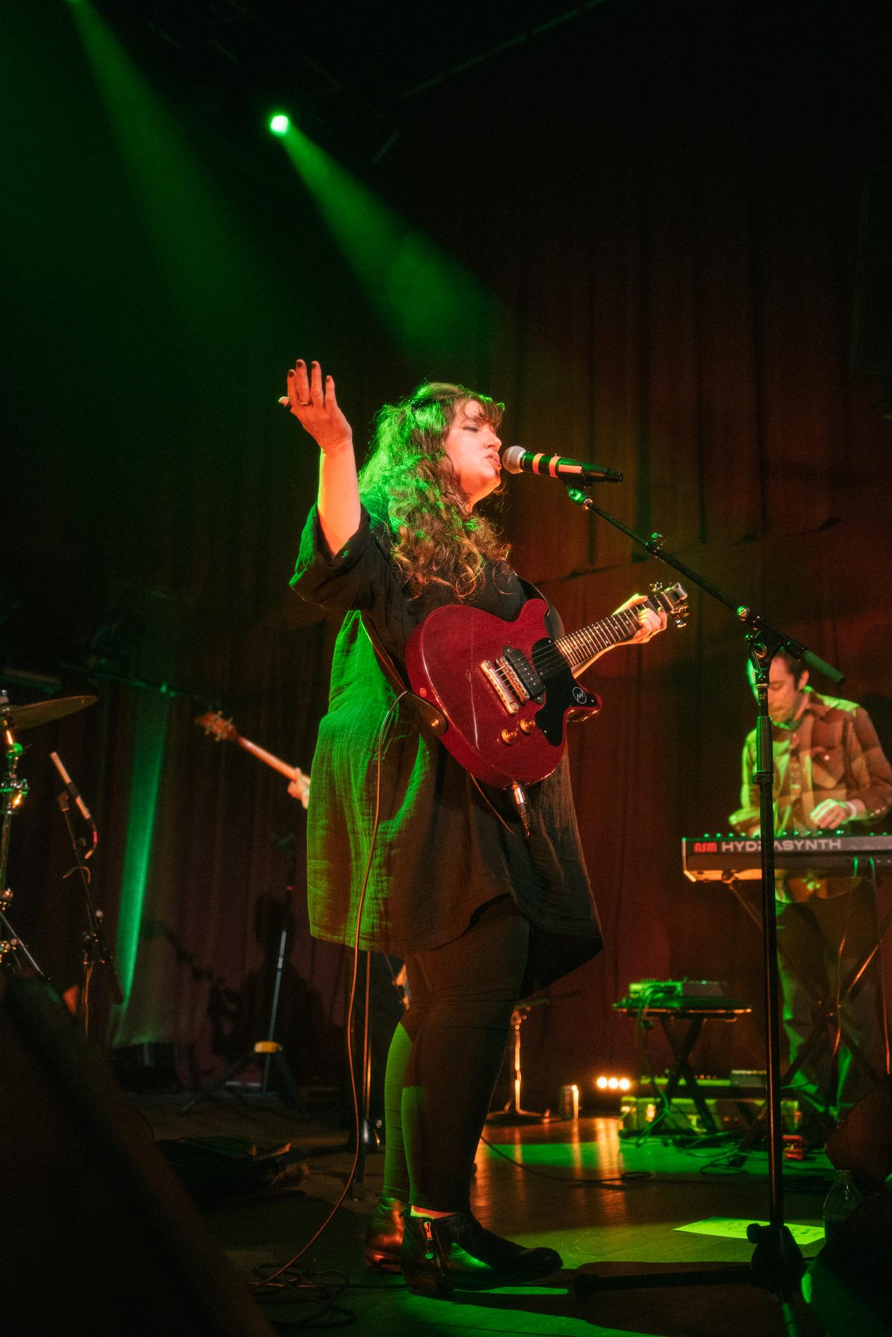 Opening the night with a meditative set was Jolie Holland, Meek’s fellow Texan and close collaborator. Her latest album is also titled Haunted Mountain, featuring the title track that her and Meek co-wrote. Holland’s version is slower and steady, with her deep, textured vocals front and center. Just listening to the recordings, it’s not surprising the two artists share bandmates as well. Adam Brisbin’s indisputable guitar fuzz language rips through both Holland and Meek’s Haunted Mountain. Though Holland’s music was too sleepy for the uninitiated party member I came to the show with, the rest of the crowd was transfixed. At its brightest moments, Holland’s music had me levitating, and gave me a good excuse to close my eyes for a second in a trusting crowd.