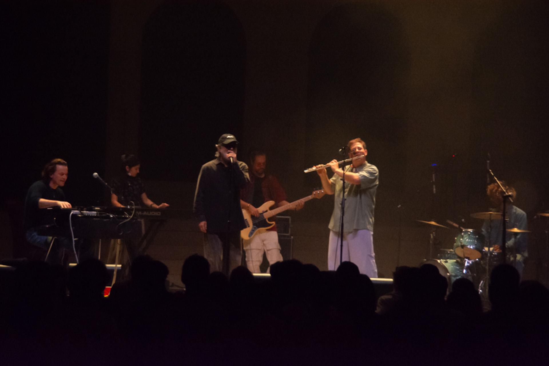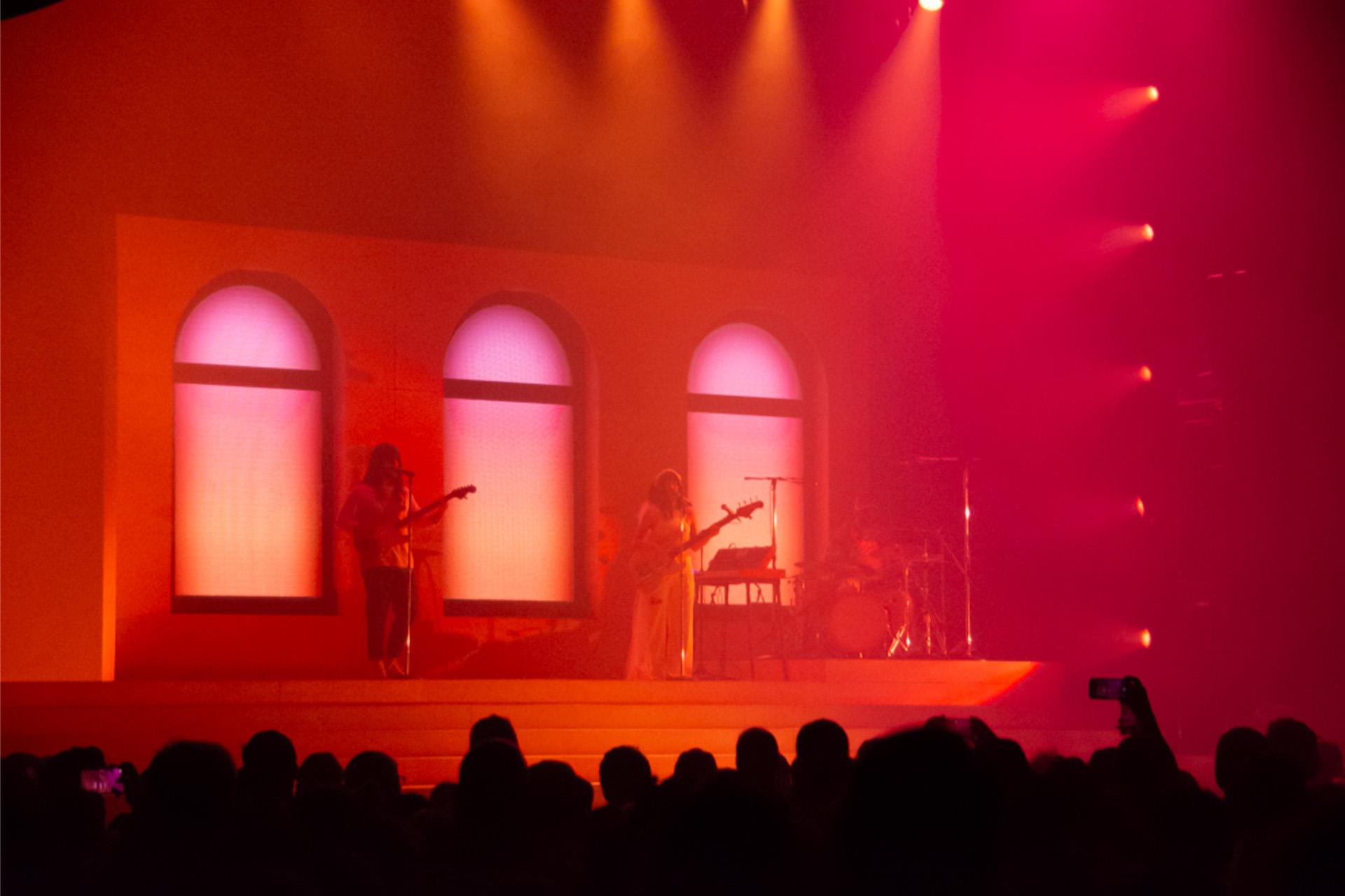 Outside the Met were different vendor trucks that were serving drinks and a DJ playing music which gave the feeling of a festival. The opening act was a keyboardist John Carol Kirby from Los Angeles, California. Alongside Kirby were four other musicians, another pianist, bass player, drummer and flutist. They were all funky, especially the flutist who was getting down and moving to the music beating played throughout the set. I’m not very familiar with John Carol Kirby, but I do enjoy listening to jazz music, so it was nice to see him and the other musicians play together on stage. The last song they did, the flutist pulled out a saxophone and began to add a different sound to the grooves. Jazz musician John Carol Kirby and his crew had The Met feeling like it was downtown at Time bar hearing a jam session from some amazing musicians. After getting a taste of jazz as the appetizer, it was time for the main dish, soulful alternative rock music blended with some funk brought to you by the musical chefs known as Khruangbin. The stage was dressed like an old home, similar to the A La Sala album cover.