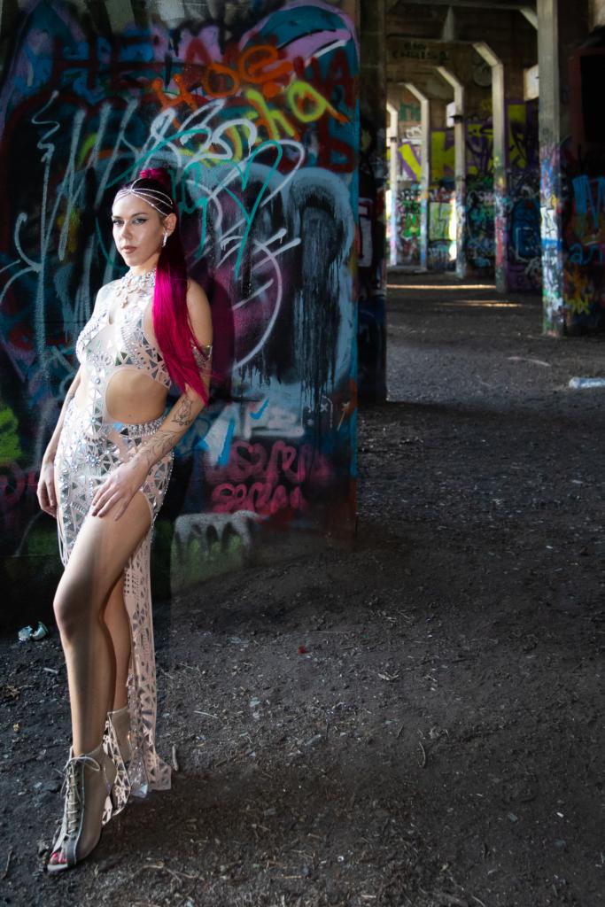 Electric Honey’s current multifaceted career as a DJ, aerialist, and performer would undoubtedly make her younger self beam with pride. From a young age, she harbored dreams of running away with the circus and pursued gymnastics and dance with fervent passion. Even when injuries temporarily derailed her dance ambitions, she persevered, always seeking out new creative outlets that brought her joy.