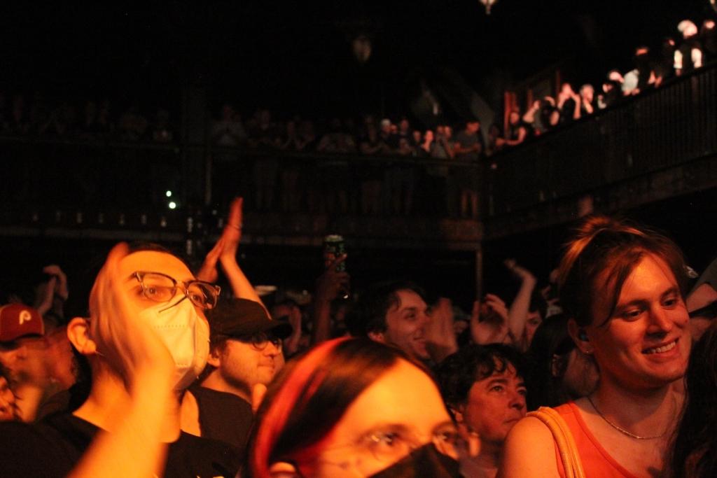 Amidst this sonic march, Gallego sang short, flanged verses before letting the lead guitar and saxophone take turns grinding out solos. After a warm introduction and an interlude that sounded as if a 1950’s news broadcast were aired from the bottom of an ocean, J.R.C.G. followed up with their newest track, “Dogear.” The song was a refined reprisal of Gallego’s chaotic creativity, pushing his lyrics into the spotlight with a downtuned refrain “criminal, criminal, criminal” that sunk back into the pounding waves of percussion and thunderous guitar noise with each passing chorus. By the time Gallego and the band were saying their thank yous, the crowd was completely under their spell, and I found myself aimlessly tapping along to the beat of “Rainbow” as I anxiously waited for Mdou to come out.