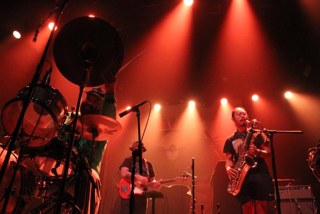 Mdou’s guitar began to sing one last time, slowly picking up pace before flying madly into the opening moments of “Imohaur.” The band followed suit, and tore into a near ten minute jam of the blues rock banger. Mdou jumped across the stage Chuck Berry style, all the while soaring across the fretboard, only stopping on occasion to encourage audience members to clap along with the infectious, intertwined groove of Michael Colton’s bass and Souleymane Ibrahim’s drumming. Then, just as the groove was dying down, Mdou leapt into the crowd, guitar and all, dancing and shredding with the audience in a beautiful, lighthearted moshpit. Members of J.R.C.G. returned to the stage to share in the comradery, dancing with the band as they gave one final farewell to Philadelphia and lovingly left the audience with a night to remember.