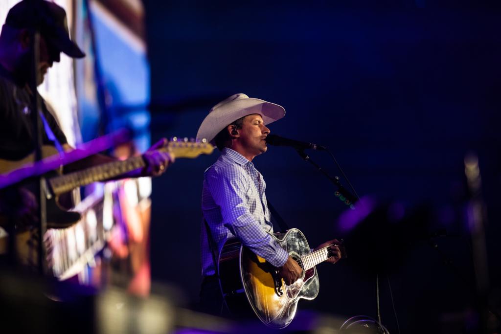 The atmosphere was hazy and humid around 8 when Bryan’s Oklahoma neighbors Turnpike Troubadours took the stage for an opening set, showcasing their own recent album A Cat in the Rain. (Fitting.) About a half hour into their performance, the skies opened up with a heavy downpour, and flood warning alerts began popping up on people’s phones.
