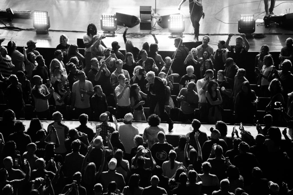 One thing I quickly learned during opener “Don’t Swallow the Cap” was that The National’s body of work — though beautiful and sad — is also explosive. The music immediately coursed through my veins, reviving me after a long intermission. “The War on Drugs and Lucius are literally the best; thanks, you guys, for joining us,” said Berninger, launching into First Two Pages of Frankenstein’s second track, “Eucalyptus,” where he began moving around the stage, working the crowd—just the beginning of a lot more audience engagement to come.