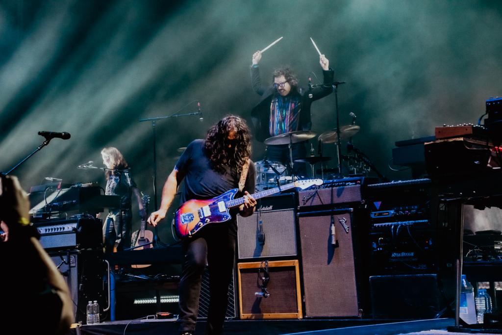 The band’s lighting captured the spirit of their sound and aura. In the interlude into “An Ocean in Between the Waves,” fog filled the stage, silhouetting the band against a heavenly white canvas. The following slow-tempo drum beats were highlighted by white spotlights, and “Harmonia’s Dream” featured sparkly lights beaming shades of red and blue, hinting at the next song, “Red Eyes,” which lyrically mirrored the feeling of watching them on stage. “Don’t wanna let the dark night cover my soul / Well, you can see it through the darkness coming my way,” Granduciel sang as daylight faded into night. “Eyes to the Wind” was a standout performance for both Hall and Granduciel. Hall made drumming look effortless — he’s so swift and casual, yet puts his whole body into every groove, fully immersing into his playing. Granduciel’s solo in the song is a must-see live: it’s packed with raw emotion, the kind that leaves you teary-eyed by the end.