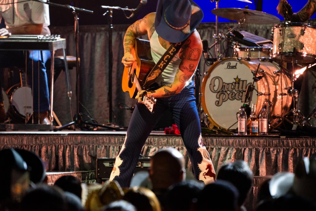 “I like to give out roses at my shows,” Peck announced after a few songs, and he proceeded to hand out a few roses to a few lucky fans in the audience, including a nine-year-old front and center and a woman celebrating their birthday. Peck managed to connect well with his fans without it feeling like there were long breaks between songs. By mid-set, he took a brief guitar break to sit down at the piano to perform “Drive Me Crazy” which he dedicated to a truck driver named in Austin (in the audience). Later at the end of the set, he asked everyone if anyone was from Florida or Mississippi — and believe it or not, at least one person claimed both. Which was good, as it meant he could continue on with the plan to close the regular set with “Daytona Sand.” Then of course, after listening to the whole theater yell for one more song, Peck came back out for the encore in his full fringe mask to close the night out on an even higher note with “Bronco.”