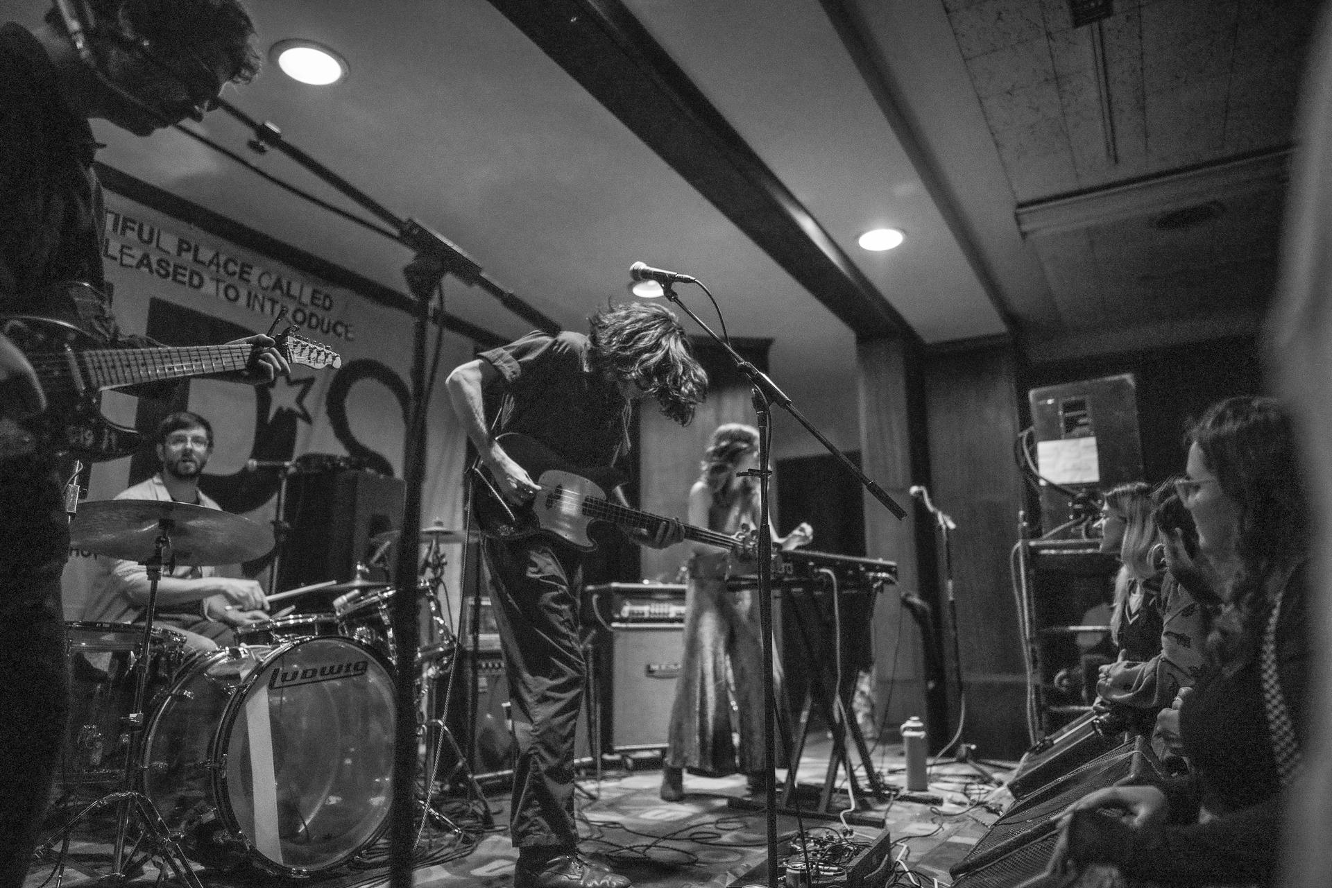 “My beloved people of Philadelphia, we have to tell you something: Ana’s foot is broken! And we have proof that it’s broken,” shared Cosials at one point with a dramatic gesture toward an x-ray hanging from the keyboard stand. Perrote’s broken foot would’ve been easy to miss without the theatrics – her long black pants hid the stability boot well, and her energetic movements showed no hint of restrictions. The entire band’s energy was infectious, rippling through the packed crowd in waves of cheers and shouts.