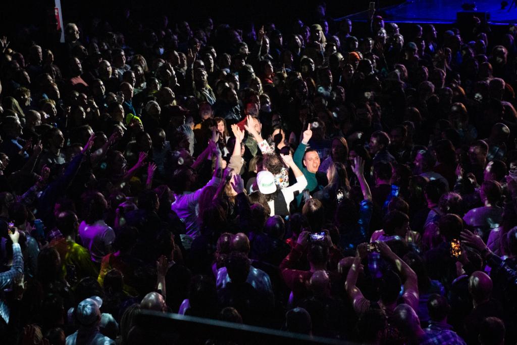 The first set ended naturally with a crowd E-A-G-L-E-S chant, followed up with Guster’s hit “Satellite.” Which was followed by them performing “Thunder God” and showed us the darker, uncertain times that Guster faced after being dropped by Warner Bros. No need to worry, though! Their second set kicked off big with “Do You Love Me” from their 2010 album, Easy Wonderful, that was followed by Miller taking his walk through the crowd during “Do it by Myself” (from the 2015 album, Evermotion). The rise of the second half continued with their 2019 song “Don’t Go” before we hit the 2020 era. They were able to pick right back up quickly with their Red Rocks headlining gig in the summer of 2021 and finished the set strong with “Come Downstairs and Say Hello” (off their 2013 album, Keep it Together) that had the room singing with them.