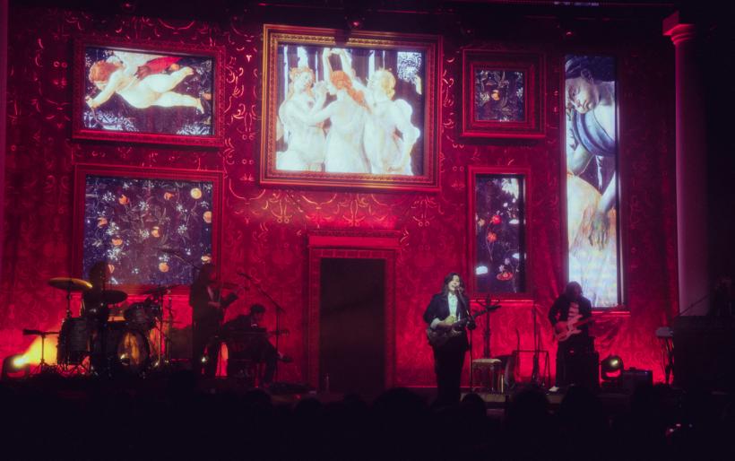 And this city made an impression on Lucy Dacus. See the new missing-you ode “Modigliani,” inspired by a trip to the Barnes Museum. And see also Dacus’s rather stunning and versatile stage backdrop, its idiosyncratically arranged TV screens purposely recalling the Barnes itself. These frames displayed everything from works of art, to starscapes to rolling thunderclouds. It was an impressive scene-setter that let the show switch moods seamlessly. And a meaningful wink at Philadelphians.