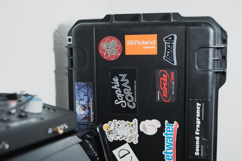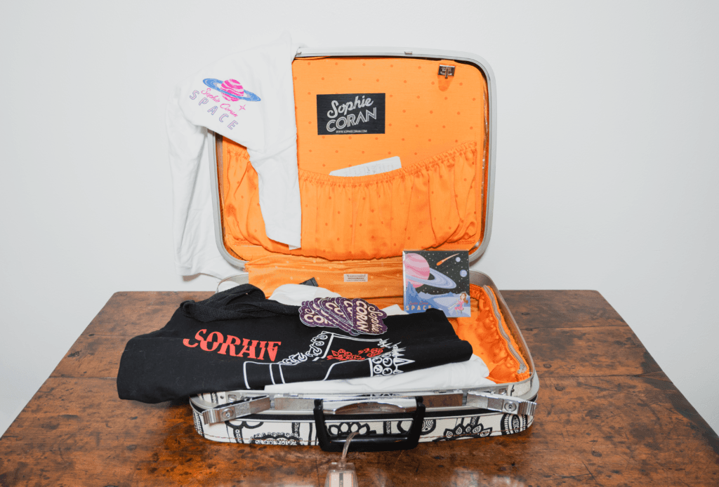 A vintage Marimekko suitcase is used to set up Coran’s merch display at gigs; it’s also a space her cats are fond of bedding down on, along with one of her Nord zipper cases. “It’s broken,” she says of the Nord case, “but the cats think it’s cool.”