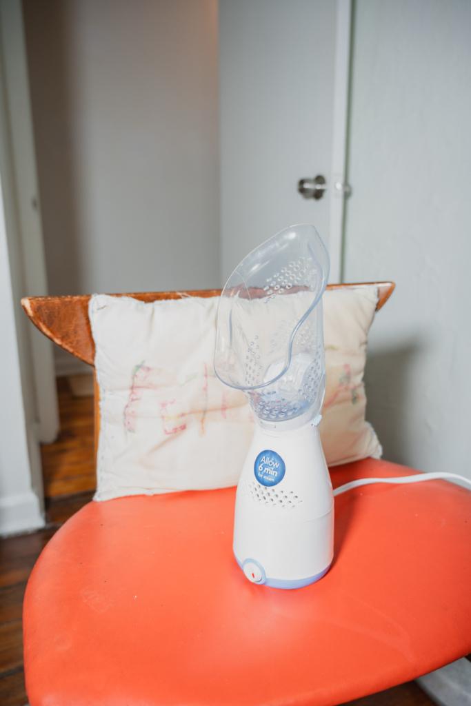 The sociable Henry crashes the photo shoot at Coran’s piano — he doesn’t mind the volume of the music when Coran gets into practice mode — while a steam inhaler sits perched in the background. For a vocalist always on the go, Coran says “this has been a game changer for me.”