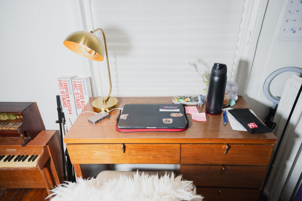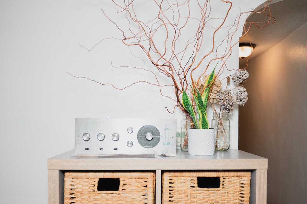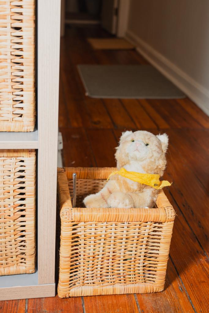 Despite the small layout, there’s a lot of room for storage — Coran says she likes drawers, likes having her stuff organized, and the bins and closet space are great for storing merch. “I’m a minimalist at heart,” she says. “But I’m also sentimental. I love saving things. I have boxes of handwritten letters, I love writing letters.”