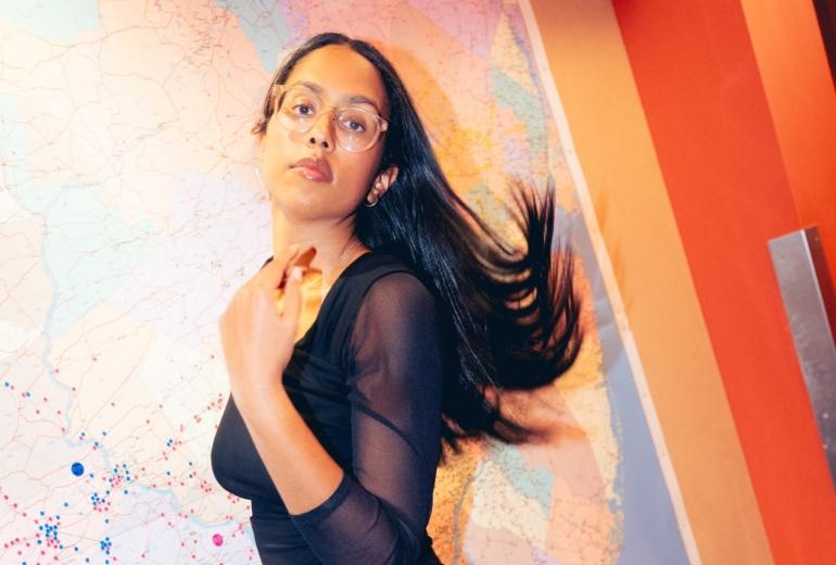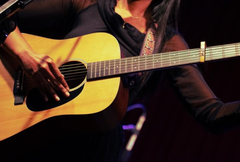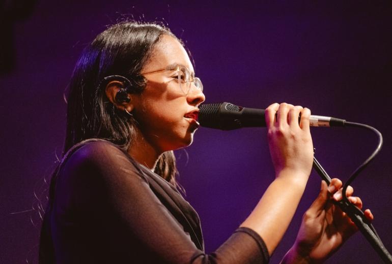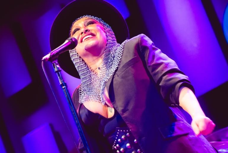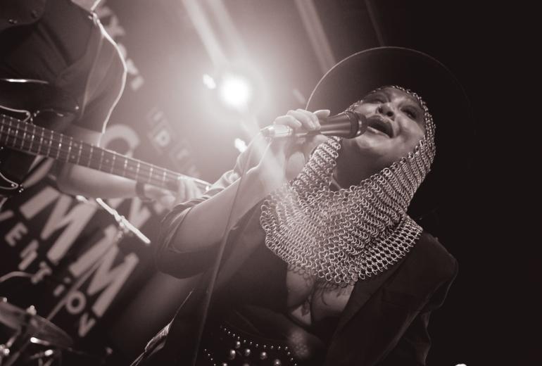 With a subtle yet commanding voice, UK artist Lady Blackbird offered NON-COMM a set of groove-oriented songs that draw on soul, jazz, and folk music. The first artist to play on the NPR Music Stage in World Cafe Live’s Music Hall, Lady Blackbird’s performance was arranged with electrifying rockers at the top (“Woman” was a stunner) with emotive acoustic arrangements (the closing “Like A Woman”) that called to mind Nina Simone and Joan Armatrading. Her sophomore album Slang Spirituals came out on London label Foundation Music in May of 2024.