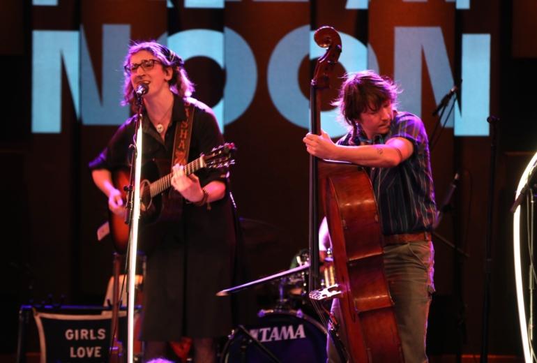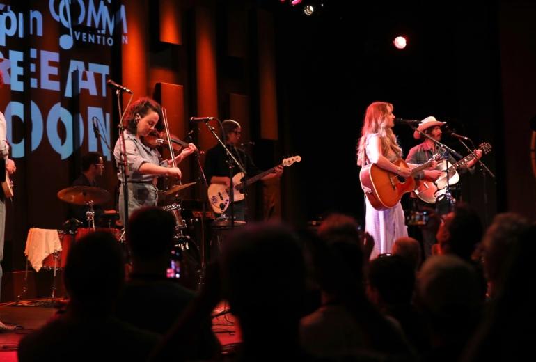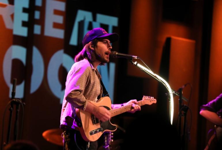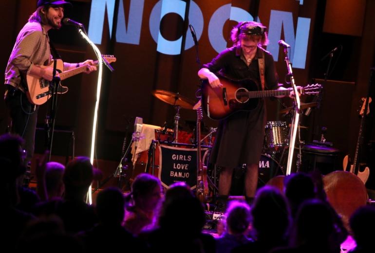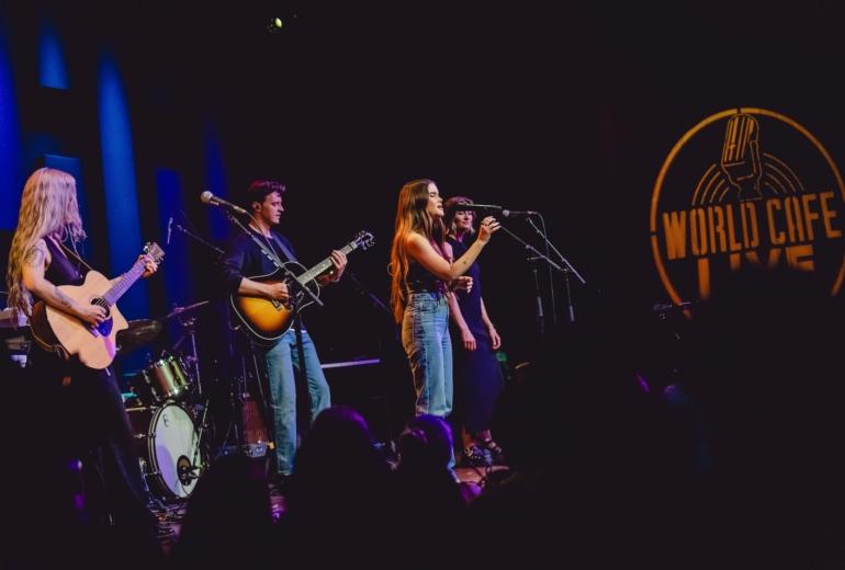 Crossing the bridge between folk and modern rock, Shenandoah Valley band Palmyra got the second day of NON-COMM under way in the Music Hall of World Cafe Live with an upbeat, uplifting set. With a relentless stomping pulse and fervently-strummed guitar lines, the band’s album Restless recalls the early 2010’s wave of post-Mumford / post-Lumineers music. Many of the songs they performed are named for cities and places (“Arizona,” “Hudson”), making it ideal music for the open road. (If you tuned in while driving, the experience was probably optimal.) The band previously played a Free At Noon concert in February, warming up for the release of Restless in late March. Acknowledging the broadcast professionals in the crowd, Palmyra said “It’s been such an amazing month since this record came out. And a large part of that is thanks to radio stations like y’all.”