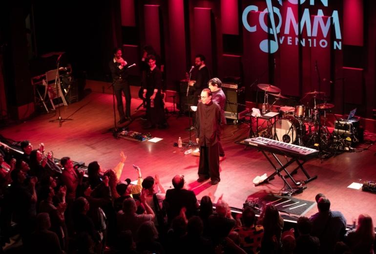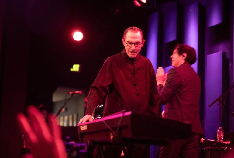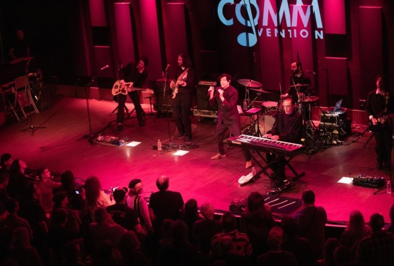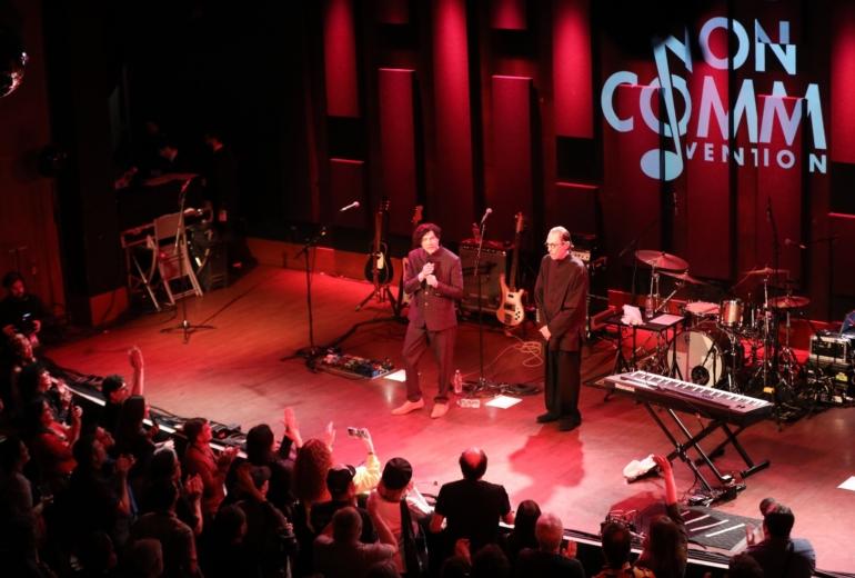 WXPN’s Eric Schuman was bursting with excitement as he welcomed the band Sparks onstage to close out night two of NON-COMM, and with good reason. The prolific synthpop icons have released albums in six distinct decades; their latest, Mad!, is their 28th record. The band’s core duo of brothers Ron and Russell Mael played World Cafe Live with a robust array of backing musicians juggling guitar, bass, and keyboards. They hit the new record’s highlights, like “Do Things My Own Way” and “Lord Have Mercy.” But as the room filled up, Sparks dug into their vast catalog for selections they deemed “ancient” (1977’s “Goofing Off,” the closing punch of “No. 1 In Heaven” and “This Town Ain’t Big Enough for Both of Us”) that got the crowd going. That energy was reciprocal, too, as a spry Russell leapt and dance, and worked the fans and new faces lining the front row.