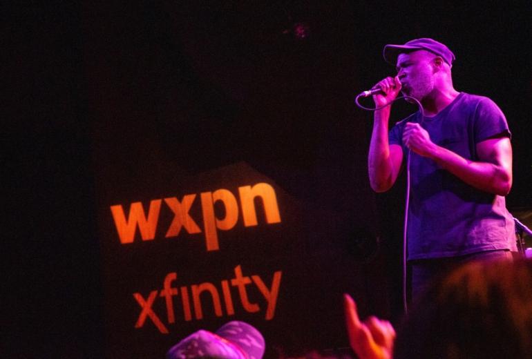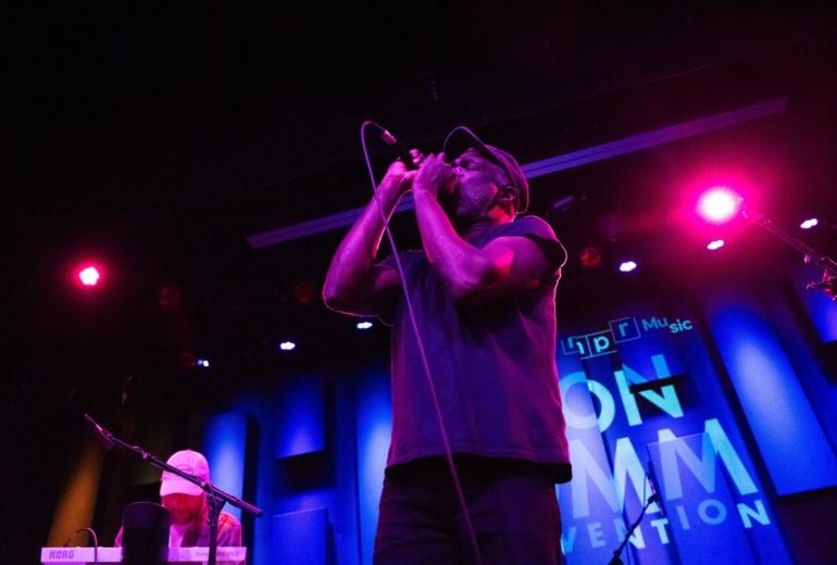 After over two decades as the lead vocalist and frontperson of revered New York City art rockers TV On The Radio, singer-songwriter and actor Tunde Adebimpe released his solo debut, Thee Black Boltz, this spring via Sub Pop. The record finds him stretching for a broader sonic palette than his main band — it’s got those experimental rock grooves, yes, but also dashes of subtle Beatles-esque psychedelia, Giorgio Moroder style dance energy, and tender songs about love. Adebimpe brought all of this to the NON-COMM stage, performing electronic duo style and delivering a set that was surreal (“Ate The Moon”) and sublime (“Somebody New”). Short of a set this August at Carnation, Washington’s THING festival, Adebimpe is keeping his touring activity this year centered on TVOTR, making this set (as WXPN’s Kristen Kurtis pointed out in her intro) a rare and special thing.