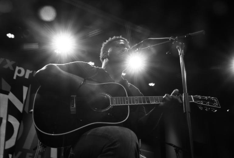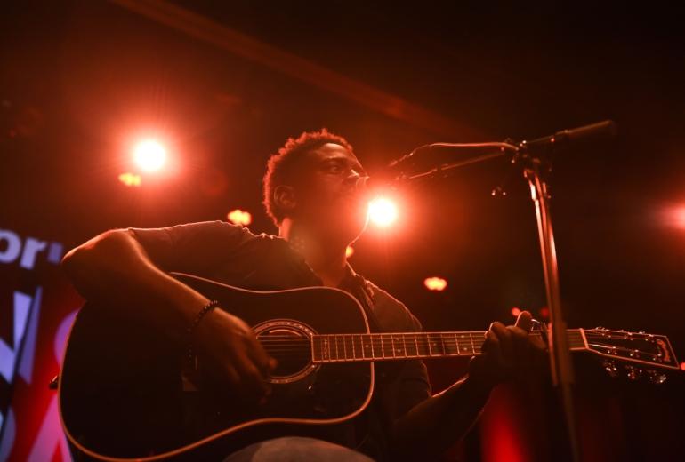 A rising force in the Americana music world, guitarist Kashus Culpepper delivered a smoky set of blues-infused soul to the NPR Music stage at NON-COMM Thursday night. Playing an acoustic guitar seated, and flanked by a keyboardist and guitarist, Culpepper has released a stirring array of singles over the past year, including his most recent, “Man of His Word,” which he played for the Thursday crowd, along with a cover of “Ain’t No Sunshine” by Bill Withers and yet-to-be-released songs.