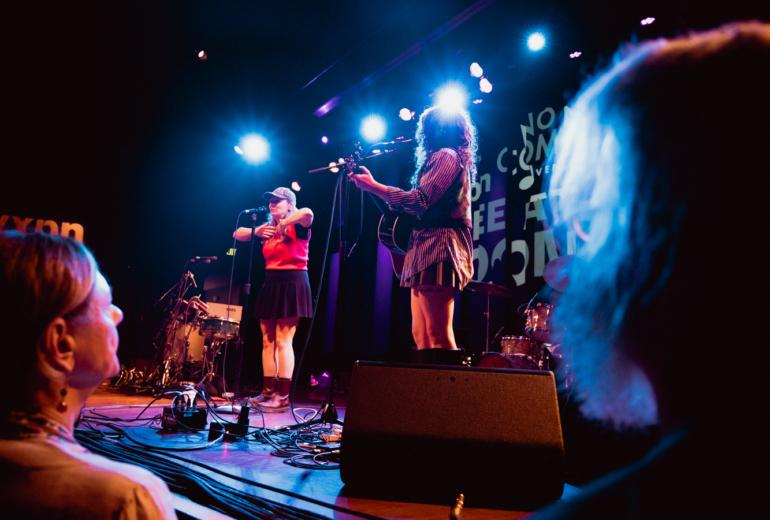 It’s been just over a decade since siblings Natalie, Allison, and Meegan Closner began making folk-infused rock music together under the name Joseph. This year wasn’t the band’s first appearance at the NON-COMMvention — they were here in 2016 for a showcase set and a backstage video session — but it was their first appearance as a duo. In 2014, the siblings announced the news that Allison was amicably parting ways with the band; Natalie and Meegan planned to move forward writing songs as a duo, and they showed off their progress at today’s NON-COMM Free at Noon at World Cafe Live. Two unreleased cuts were performed, “Bye and Bye” and “Closer 2 Me,” while they started off their performance with the soaring harmony-driven anthem “White Flag” from their 2014 debut I’m Alone, No You’re Not and closed with “Green Eyes” from their third studio album Good Luck, Kid.
