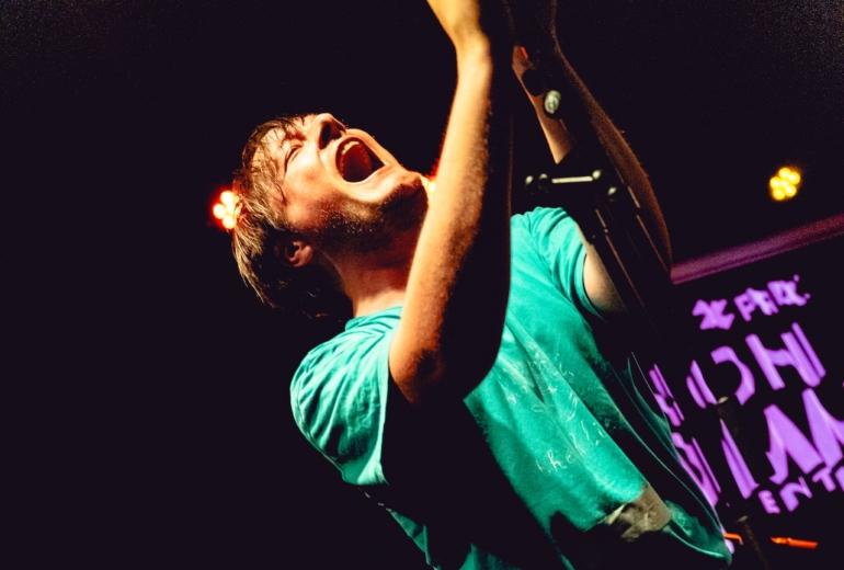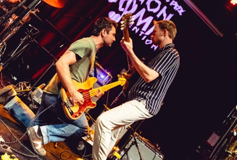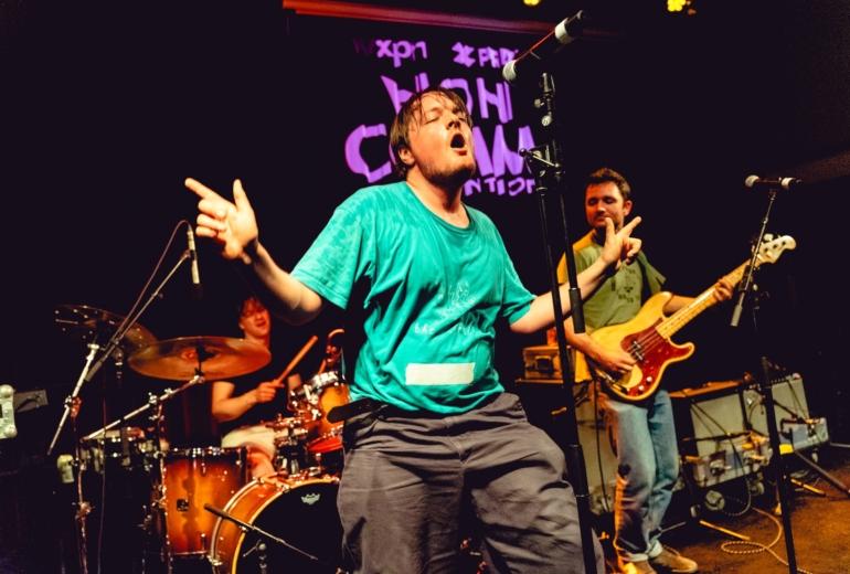If Orla Gartland closed her set with “Little Chaos,” the band to take the Lounge Stage at World Cafe Live after her brought a lot of chaos to NON-COMM. Personal Trainer is a new band from Amsterdam, and they were kinetic and unhinged — lead singer Willem Smit screamed, flailed, got in the crowd’s face, and barely refrained from knocking over all the gear surrounding him, while his bandmates mixed it up between guitar, saxophone, keys, and rock and roll moves. Musically, it was noisy, but full of accessible rhythms — one could pick out notes of The Fall, Talking Heads, Dehd and more in their fierce four-song performance.