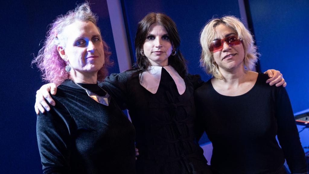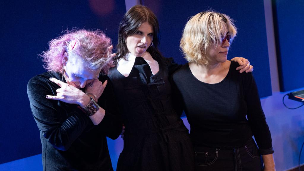 Produced by Bartees Strange, Autostatic! finds Lieberson throwing herself completely into the Lou Tides persona. Atop churning, industrial-inspired textures, Lieberson’s acrobatic voice is distorted, detuned, and deconstructed; the effect is not unlike Laurie Anderson’s pitch-shifted “Voice of Authority,” giving Lou Tides’ songs a sinister edge. On the album, the songs are built around richly textured sequences, built from the ground up by Lieberson and Strange. In this in-studio performance, Lou Tides takes on a trio formation, with drummer Sarah Galdes and Attachment Theory bassist Devra Hoff bringing the tracks to life.
