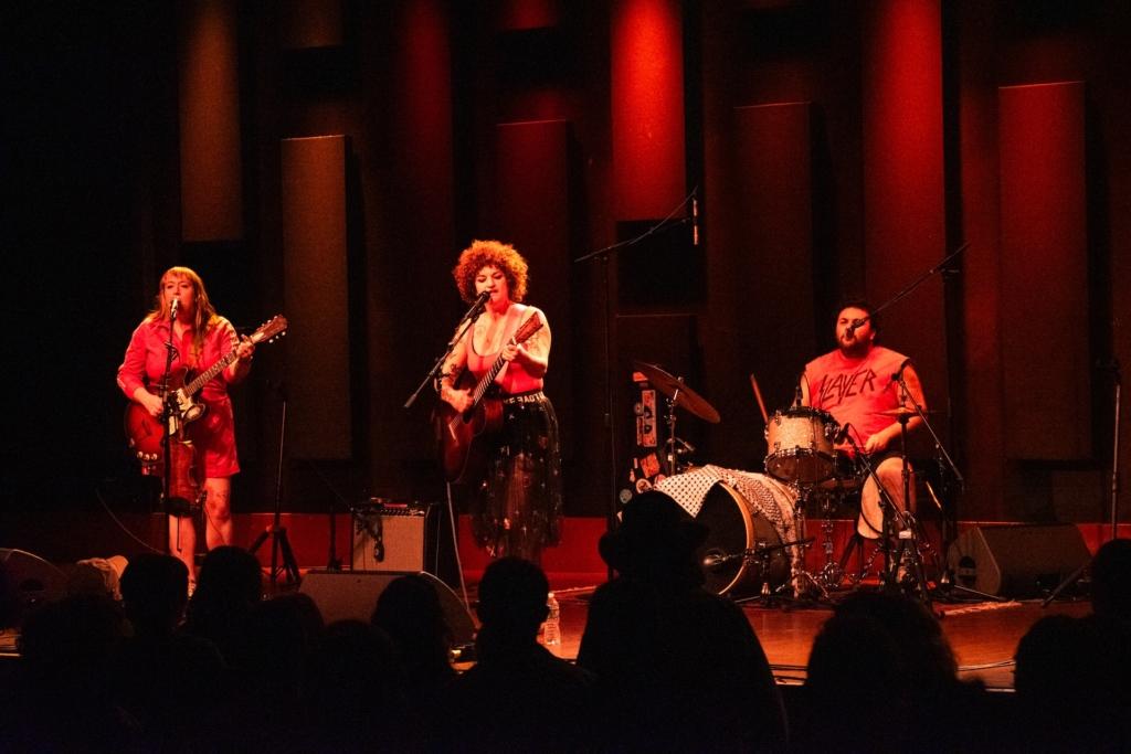 Tranbaugh opened the night with her full band before dropping down to a trio of her, Joe Plowman on bass, and Liz Faure on guitar for her new songs “My First Bedroom” and “Cascades.” When drummer Adam Shumski and a violinist rejoined them, Tranbaugh tested out a few unrecorded songs on the crowd, ending with an unrecorded “party song” during which Blanton appeared on stage to help with at the end.
