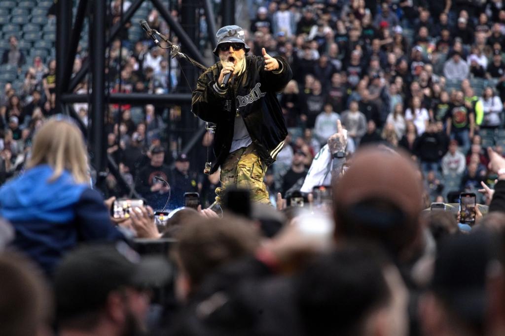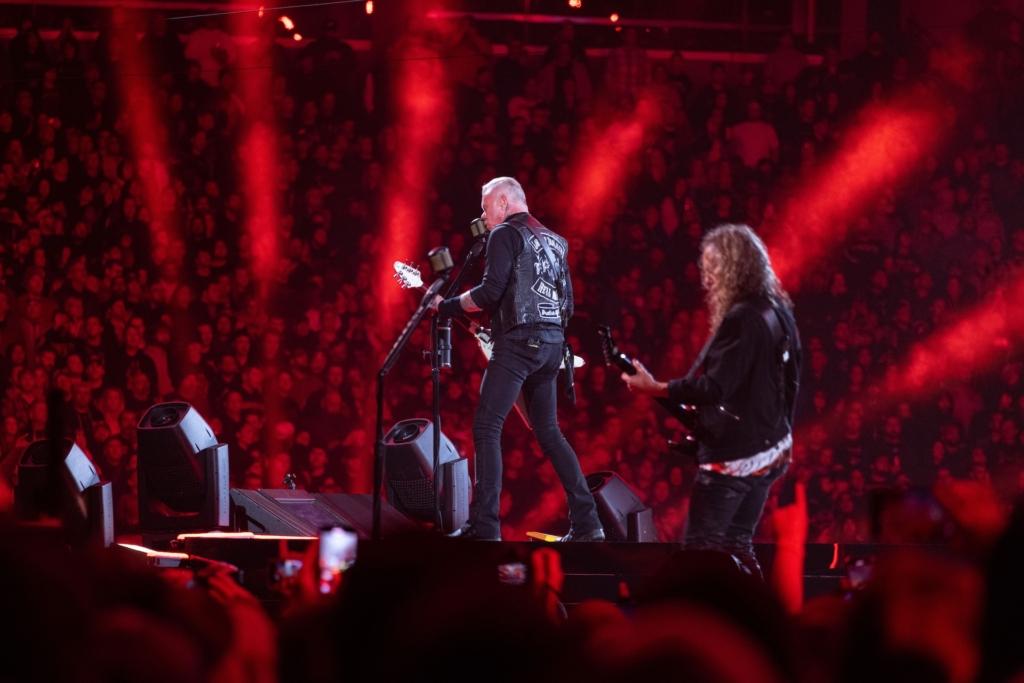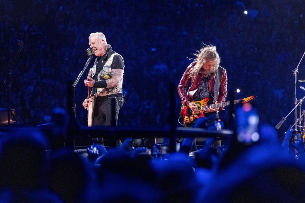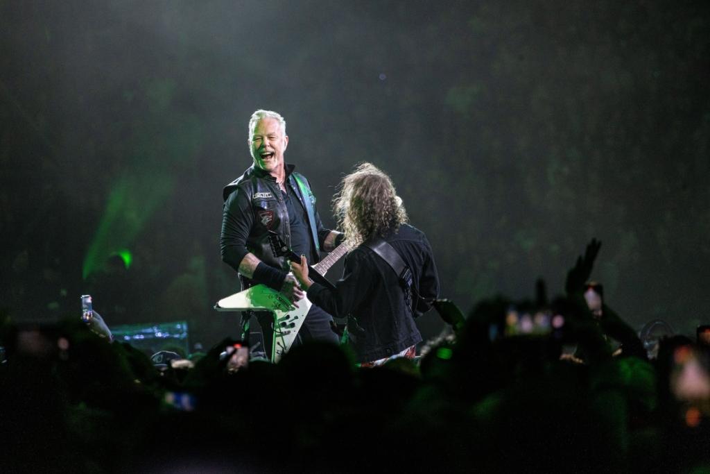 At the midway point of Metallica‘s opening concert of a two-night stand Philly, singer-guitarist James Hetfield gazed at the 65,000-something fans filling The Linc, and asked if anyone in the house was seeing them for the first time. An affirmative roar swelled from all sides; Hetfield tauntingly dubbed the newbies “Metalli-virgins,” asked “What took you so long?” and then, more earnestly, said “Welcome to the family.”