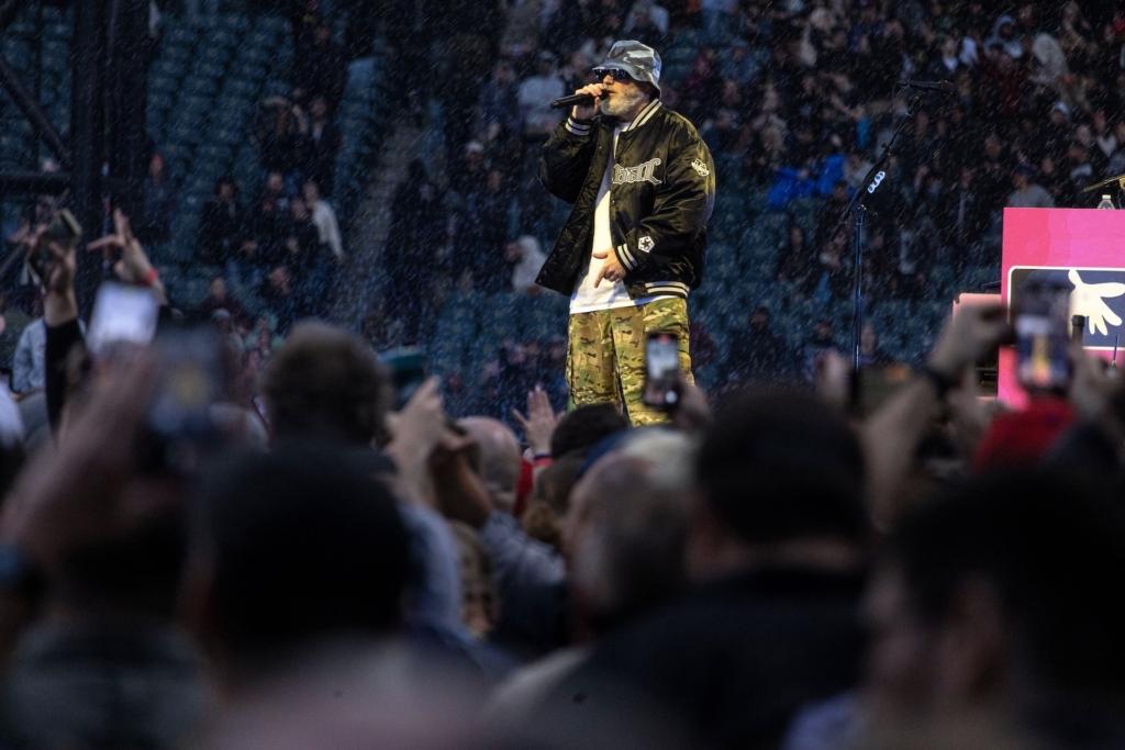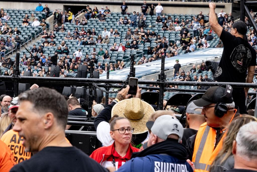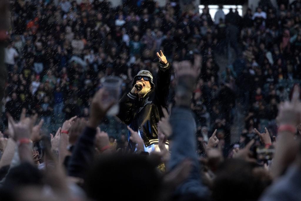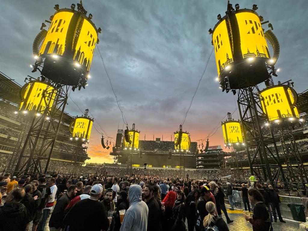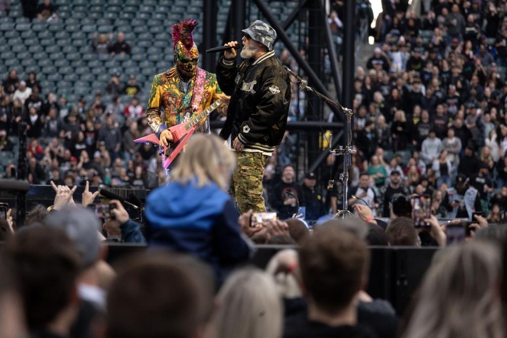 Metallica’s two-date Philly takeover — which is how they’ve handled touring their monster 2023 album 72 Seasons, setting up shop in different markets for multiple days — hit Lincoln Financial Field on May 23rd and May 25th, making an optimal way for fans to spend their Memorial Day Weekend. The band paired up with Ice Nine Kills and Limp Bizkit on Night One, and Suicidal Tendencies and Pantera on night two. The concert was performed in the round, with a ring stage set up at the 50 yard line and the bands hooked up to wireless gear — with the exception of drummer Lars Ulrich, who rotated between a series of drumkits that would pop up at one side or the other of the ring throughout the night — that allowed them to literally run laps throughout the show, getting direct face time with fans at all sides. Above the ring, eight water-tower-esque structures loomed, wrapped in LED screens, projecting real-time footage backed with graphics, archival videos, and other visualizers.