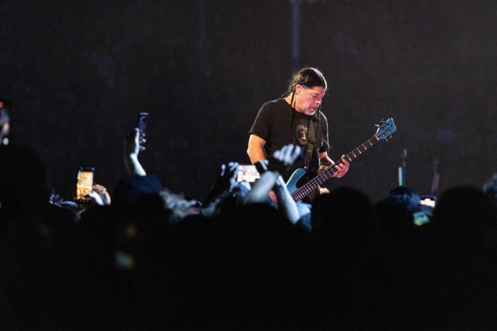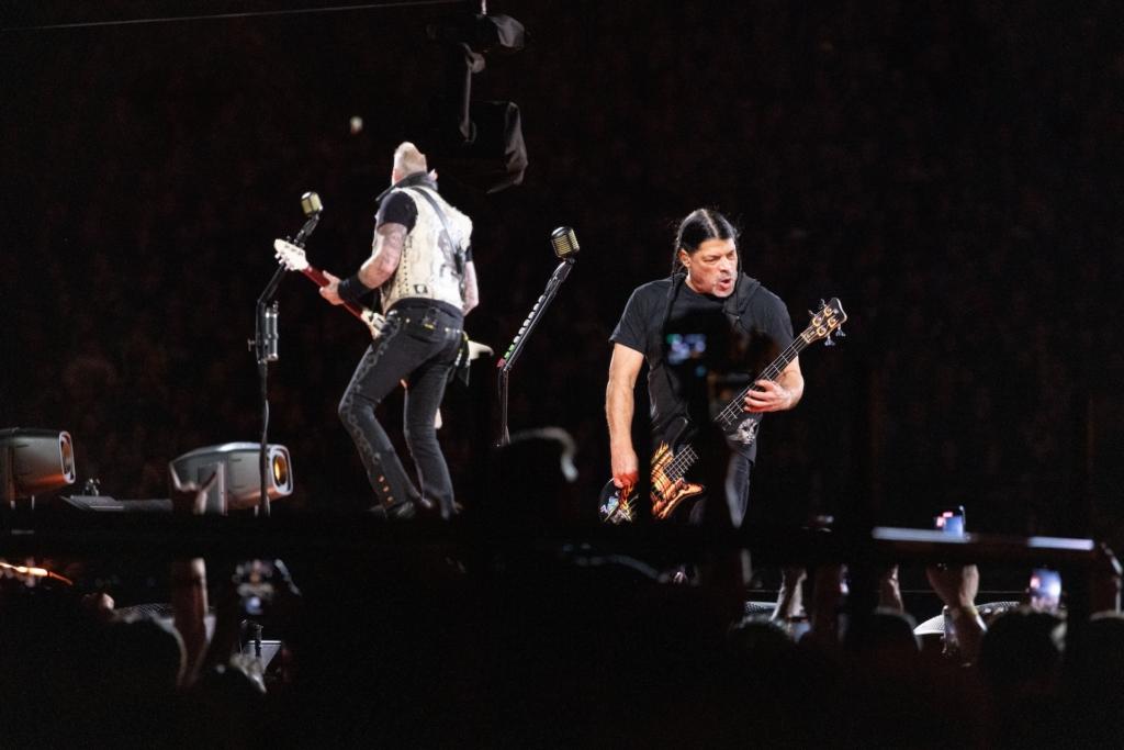 The big draw, the selling point of Metallica’s M72 tour, is that each city gets a no-repeat weekend. If you come to night one and night two, you’ll get completely different shows. That mostly shook out as advertised, though the band hit some of the same beats each night — musically remembering their late founding bassist Cliff Burton (with his song “Orion” on night one and with “The Call of Ktulu” on night two) or Trujillo joining guitarist Kirk Hammet on a noodley mystery jam mid-set (“To Live Is To Die” on night one, “Philadelphia Freedom” into Bill Conti’s Rocky theme on night two).