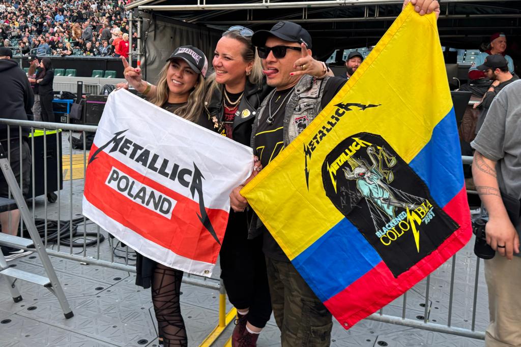 But the person with the intricate, floral mosaic face paint that abstractly locked together to spell the name of the tour, M72? With eyes painted on top of his eyelids so when he closed his eyes there were more eyes? That’s a Metallica fan. See also the groups traveling from abroad, bearing their home country’s flag emblazoned with Metallica logos and artwork. Metallica devotees from Poland and Colombia caught up with photographers and one another at the south end of the field on night two.