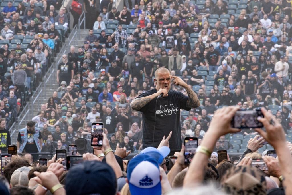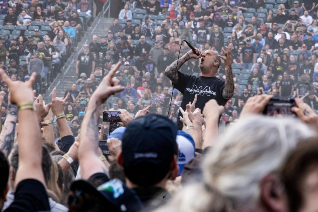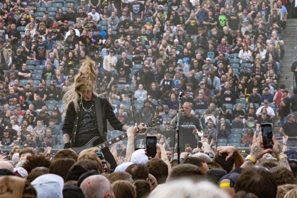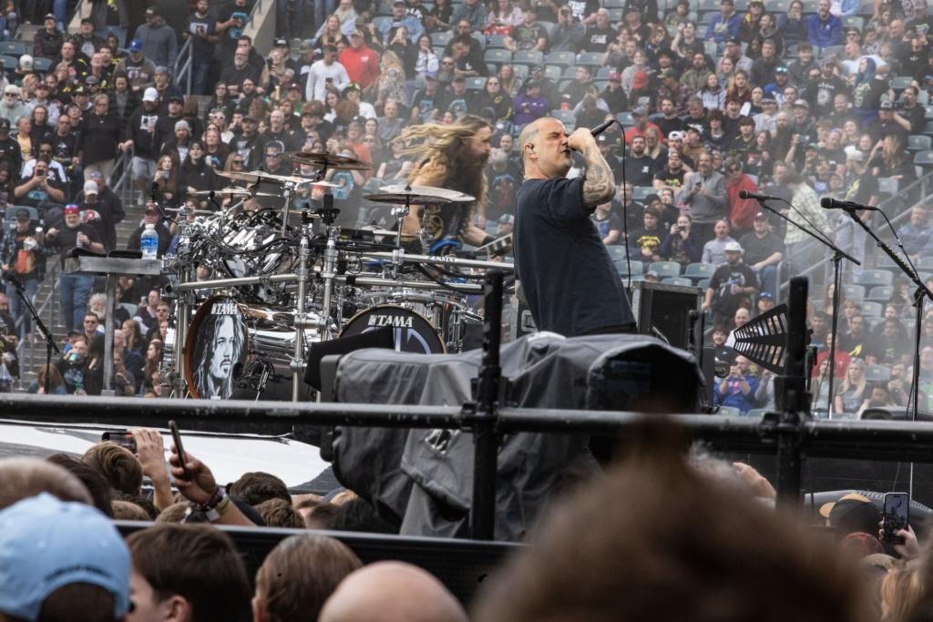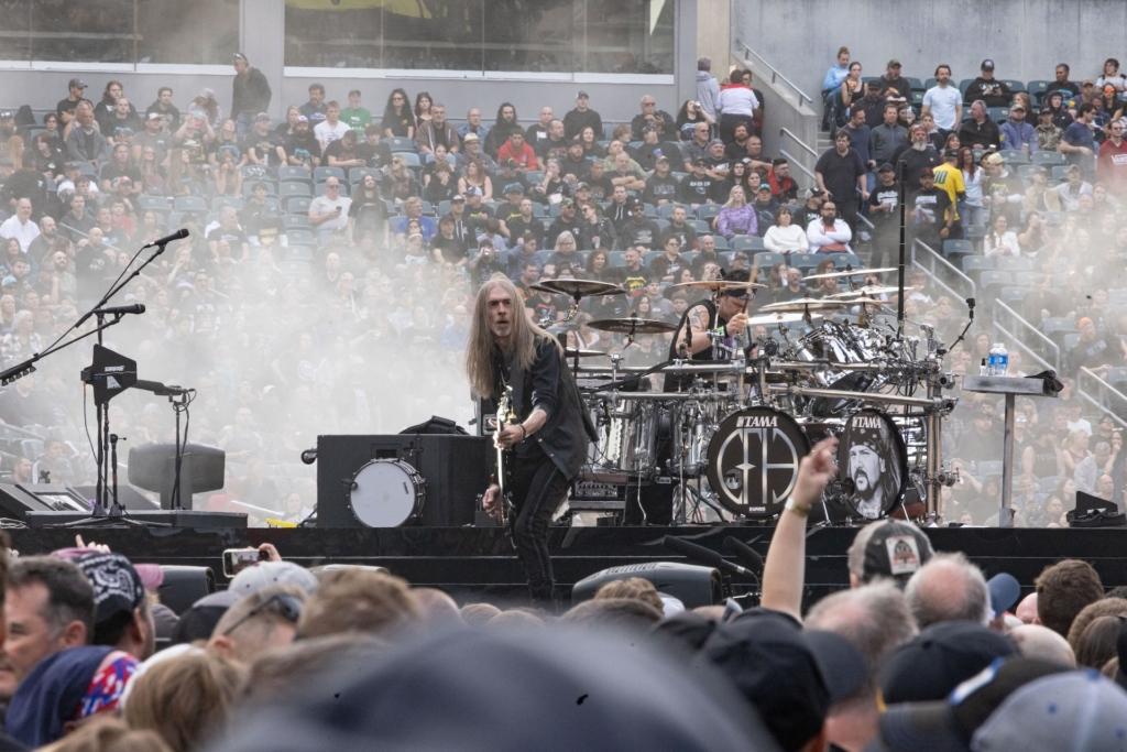 The opener with the greatest impact, though, was easily the confrontational Pantera which, speaking of high-profile pinch-hitters, now features Ozzy Osbourne guitarist Zakk Wylde in the mix. 30 years on, imposing frontman Phil Anselmo still stalks the stage with intensity, screaming cuts like “5 Minutes Alone” and “Walk,” and the stadium teemed with spectators during their Sunday set. But sensitivity comes to the surface when the band honored bandmates who are no longer there: guitarist Dimebag Darrell, who was shot and killed onstage in 2004 while performing with the band Damageplan, and drummer Vinnie Paul, who died from heart disease in 2018. Everything Pantera does, Anselmo said, is for them.